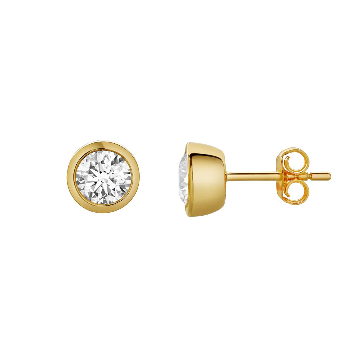 Mauli Jewels 1.00 Ct Bezel Set Diamond Stud Earrings | 14k Yellow Gold, E-F Color, VS1 Clarity | Secure Push Back Earrings for Women