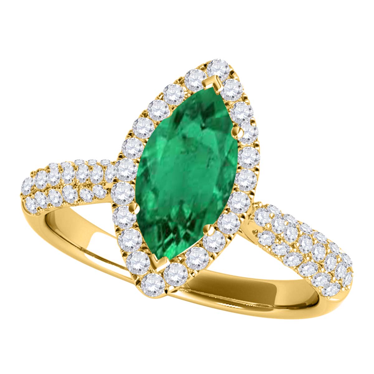 Mauli Jewels 10K Rose, White & Yellow Gold 0.87 CTW Marquise Shaped Emerald and Lab Grown Diamond Ring for Women