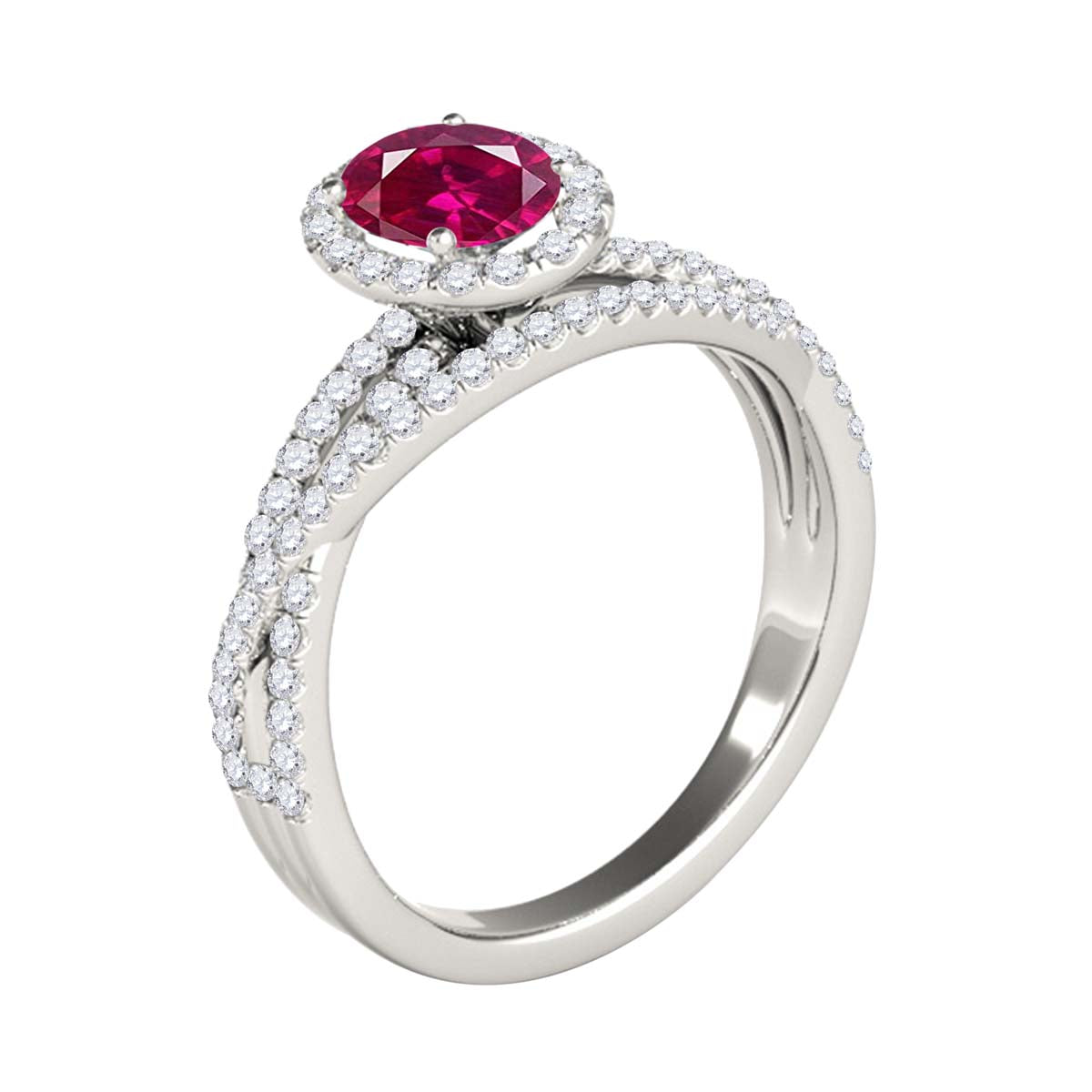 Mauli Jewels 10K Rose, White & Yellow Gold 1.22 CTW Oval Created Ruby Halo Lab Grown Diamond Ring for Women