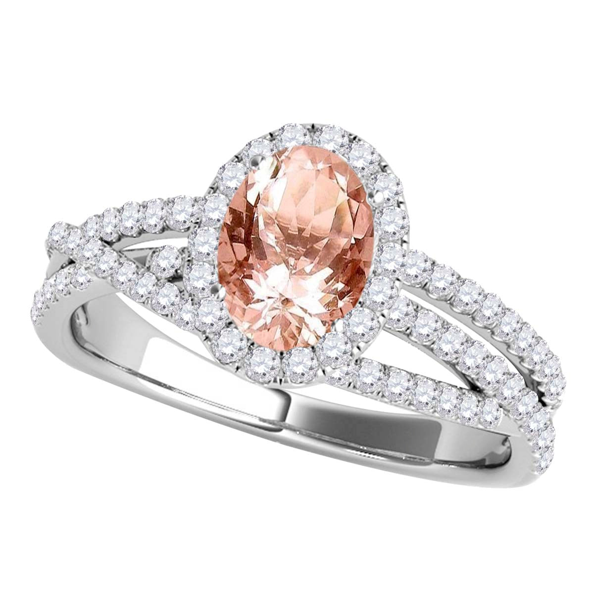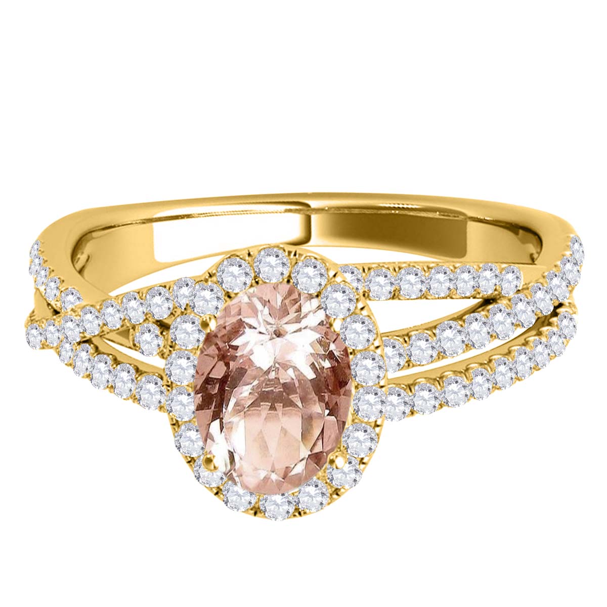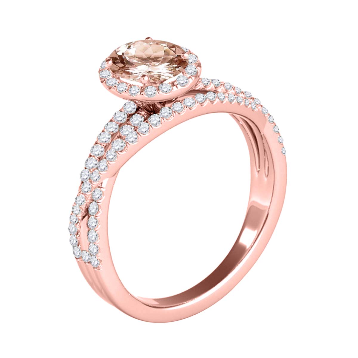 Mauli Jewels 10K Rose, White & Yellow Gold 1.22 CTW Oval Created Morganite Halo Lab Grown Diamond Ring for Women