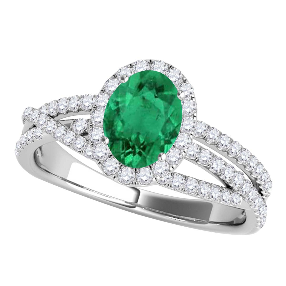 Mauli Jewels 10K Rose, White & Yellow Gold 1.22 CTW Oval Created Emerald Halo Lab Grown Diamond Ring for Women