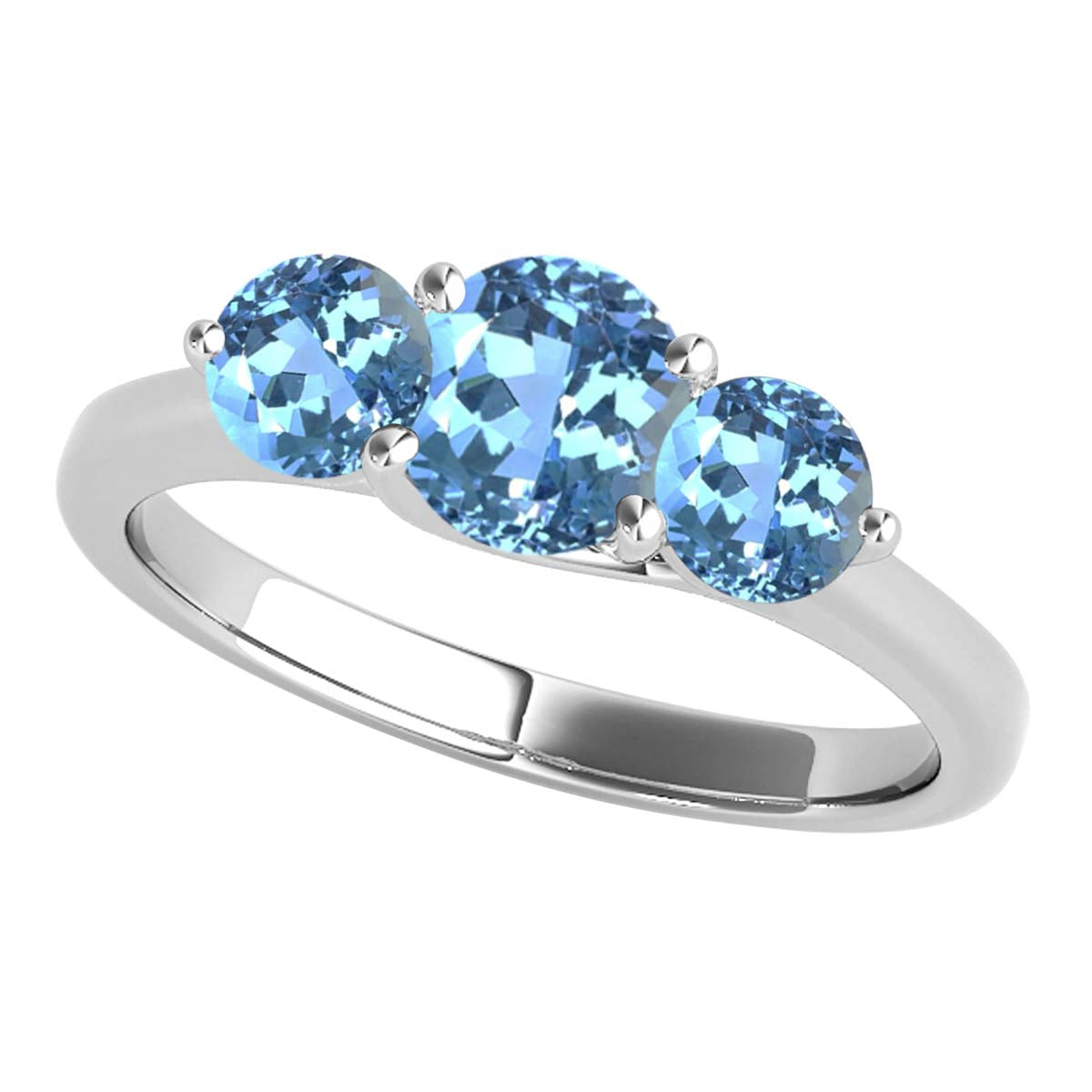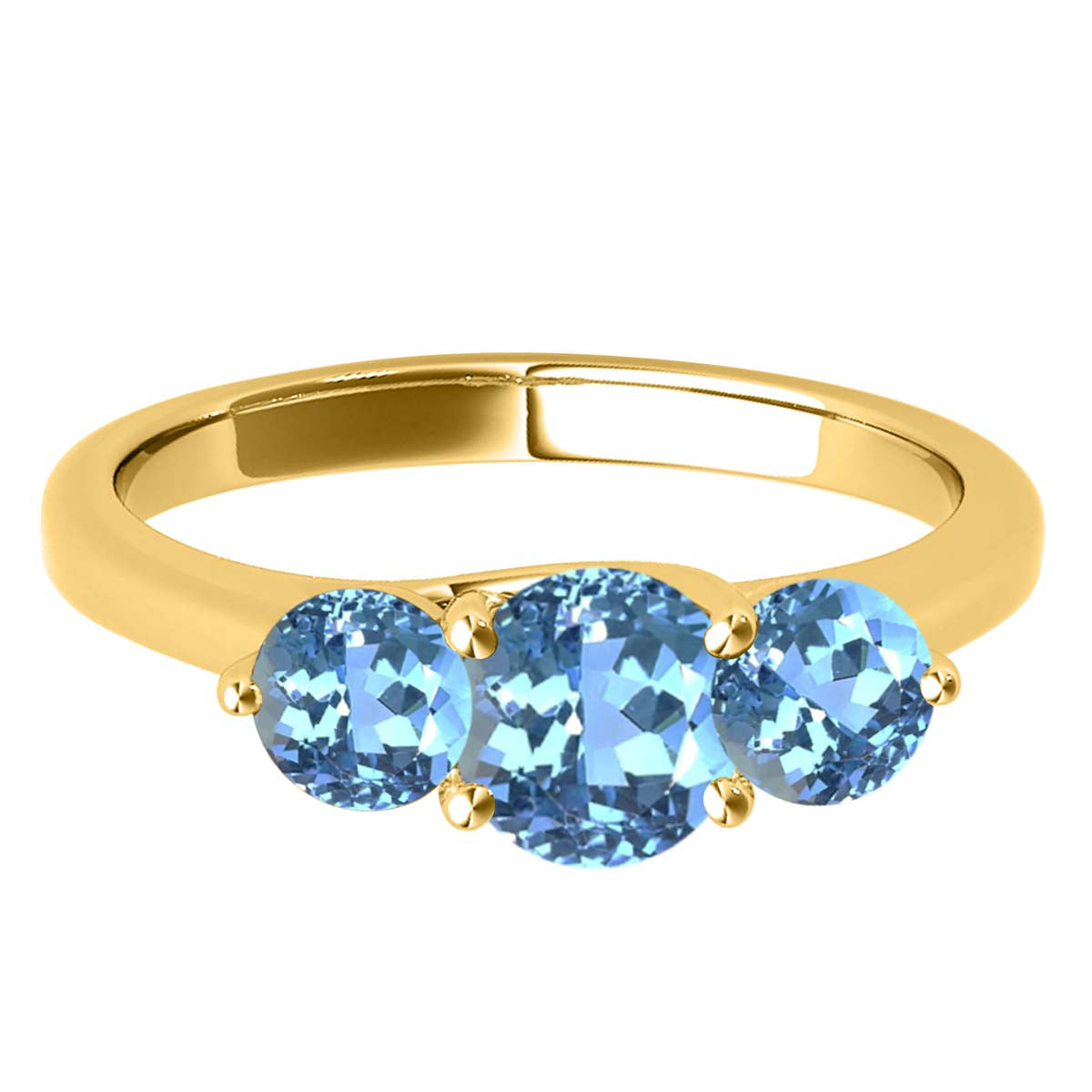 MauliJewels 2.25 Carat Three Stone Blue Topaz Engagement Ring for Women – 10K Rose, White & Yellow Gold | Round Cut Blue Topaz Wedding Ring | Elegant 3-Stone Design Jewelry Gift