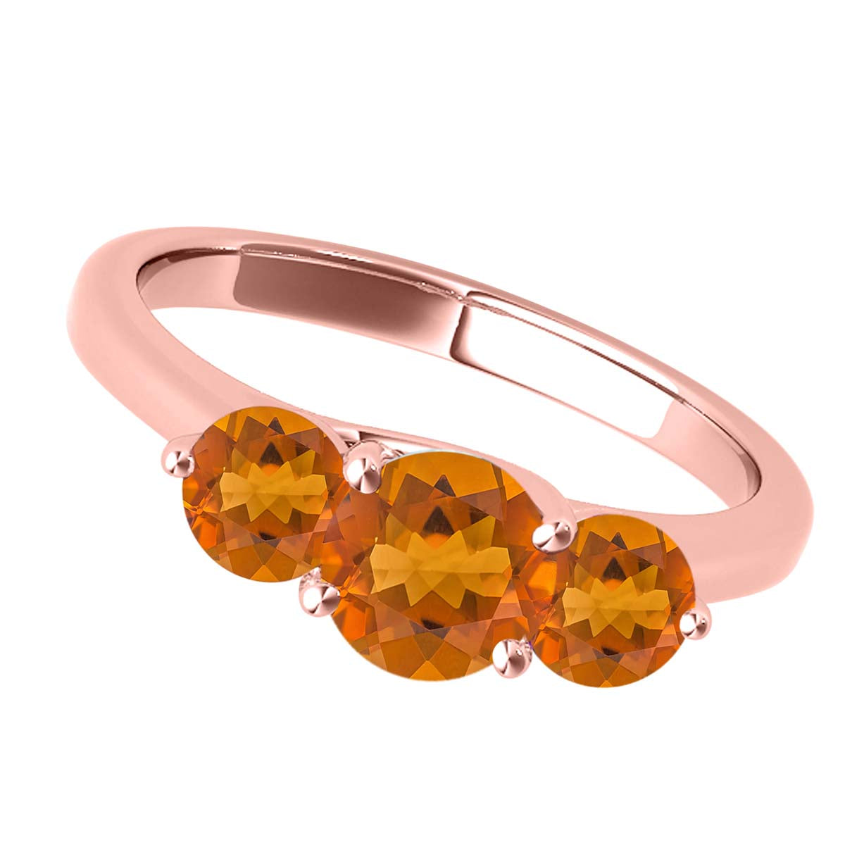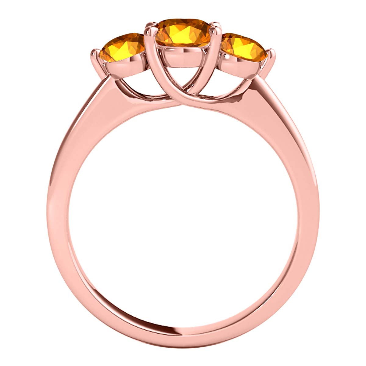 MauliJewels 2.25 Carat Three Stone Citrine Engagement Ring for Women – 10K Rose, White & Yellow Gold | Round Cut Citrine Wedding Ring | Elegant 3-Stone Design Jewelry Gift