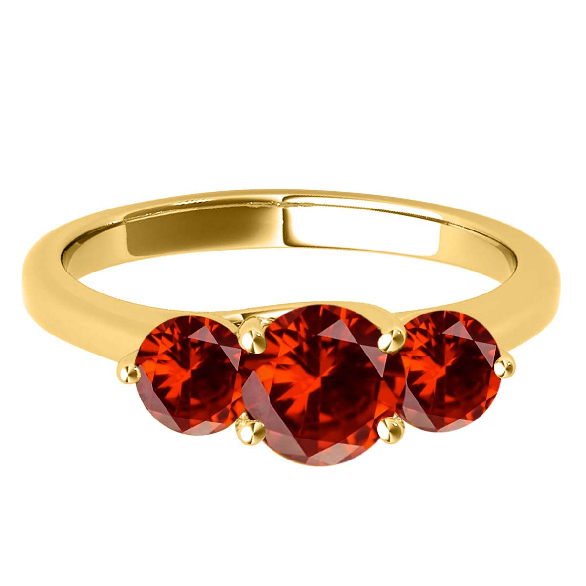 MauliJewels 2.25 Carat Three Stone Garnet Engagement Ring for Women – 10K Rose, White & Yellow Gold | Round Cut Garnet Wedding Ring | Elegant 3-Stone Design Jewelry Gift
