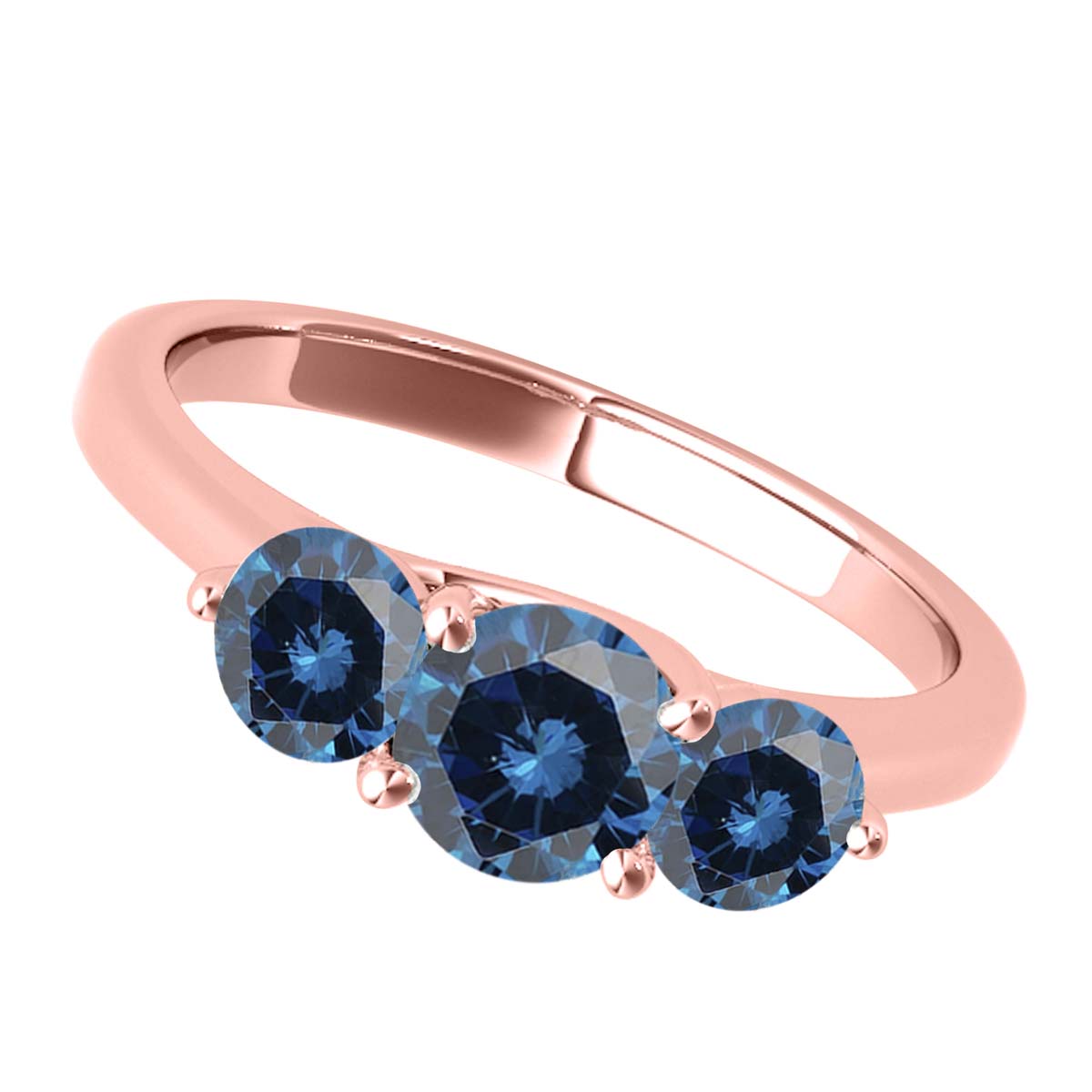 Mauli Jewels 1.00 CT Three Stone Natural Blue Diamond Engagement Ring, 14K Rose White & Yellow Gold, Prong Setting Bridal Ring for Women