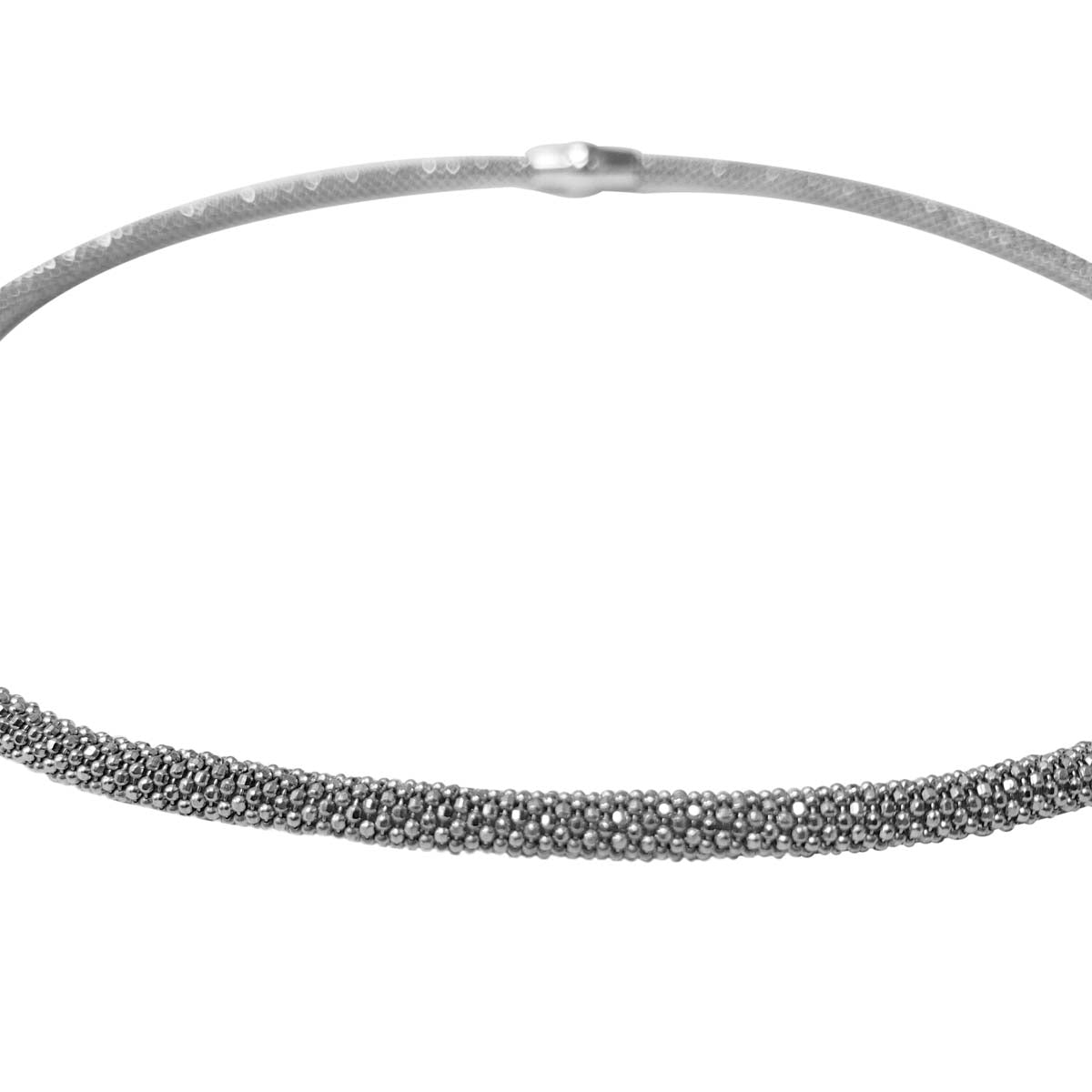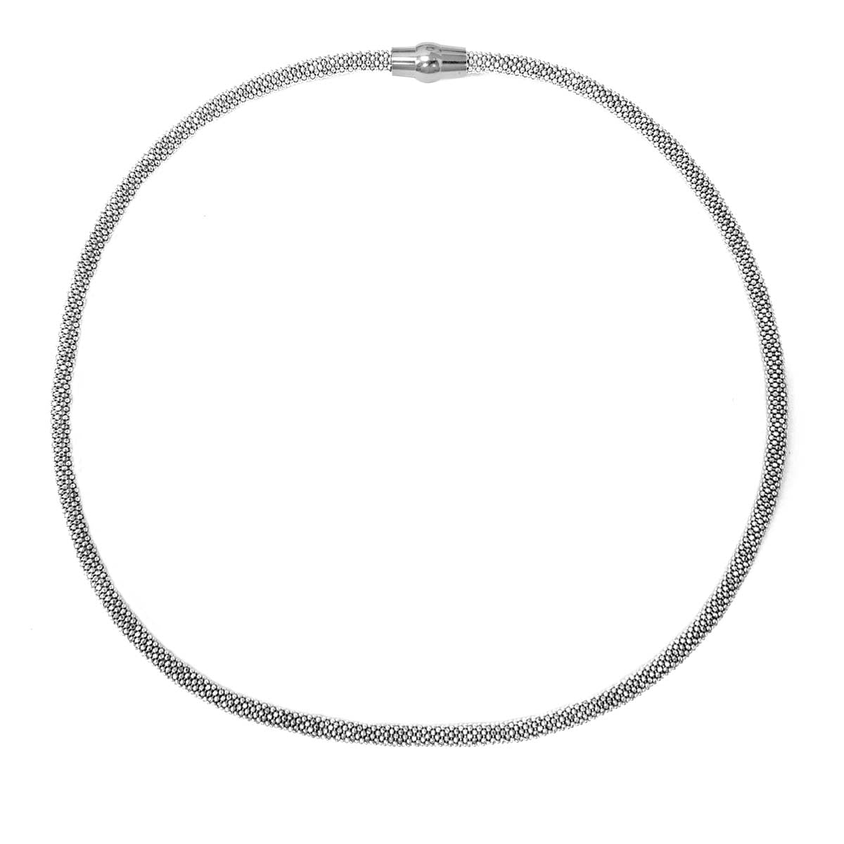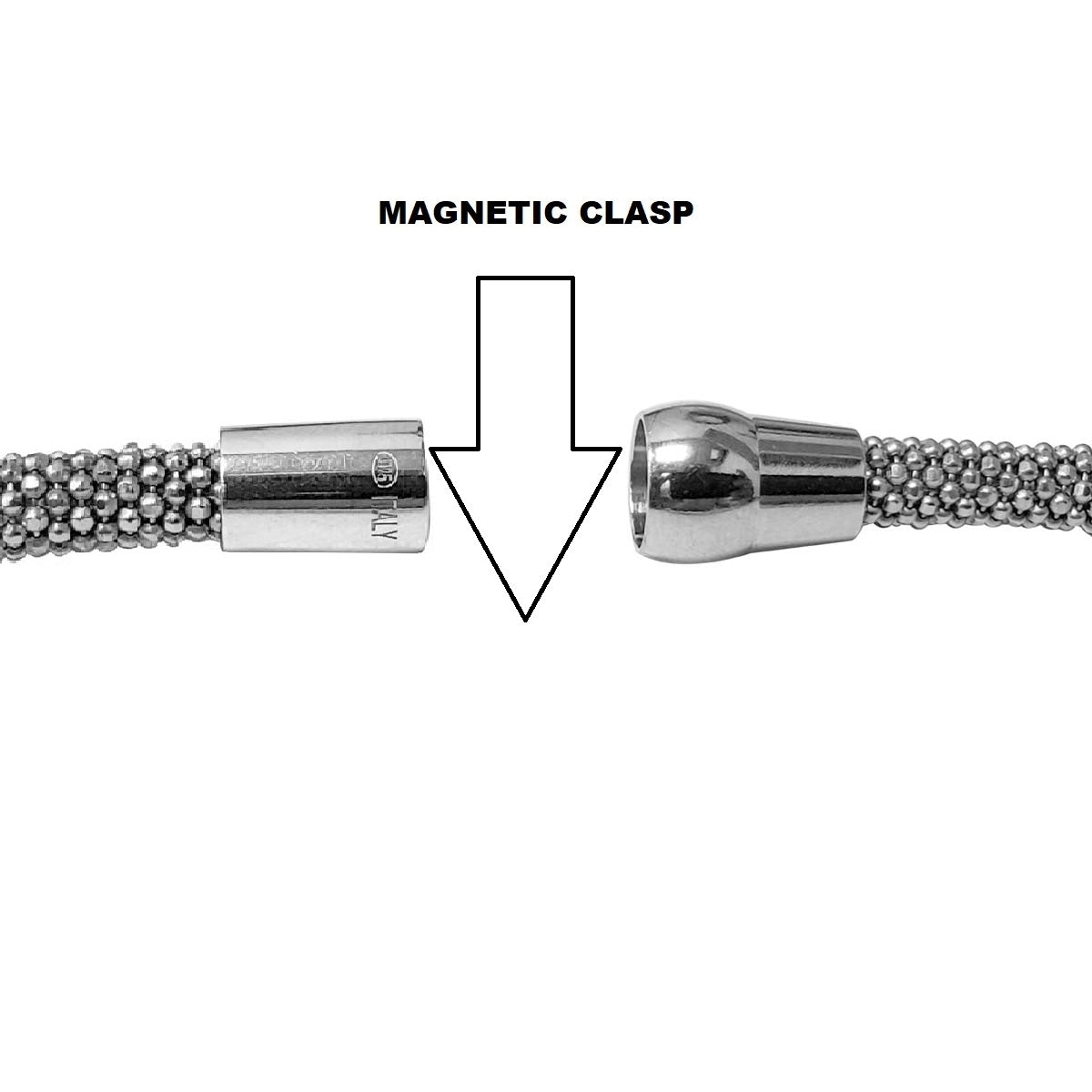 Mauli Jewels 4MM Italian Made Popcorn Chain Necklace for Women, 14K Gold Plated 925 Sterling Silver with Magnetic Clasp, Rhodium Finish