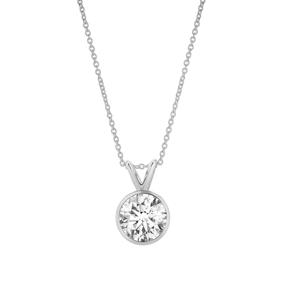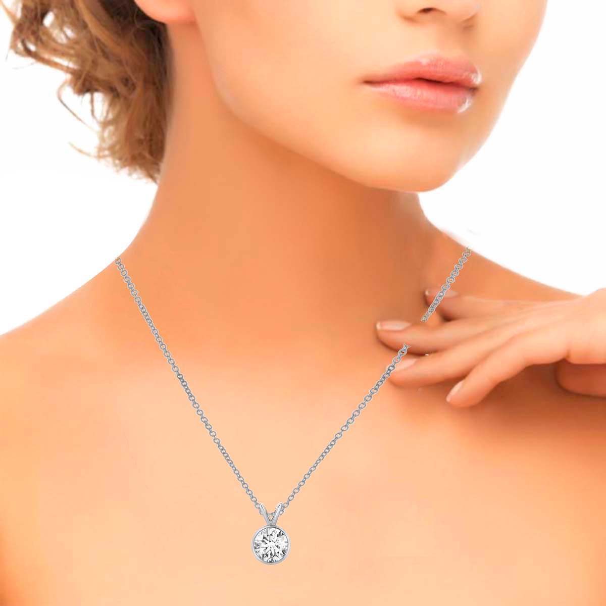Mauli Jewels 1.00 Carat Round Diamond Solitaire Necklace for Women - 14k White Gold, Color E, VS1 Clarity, V-Bale Setting