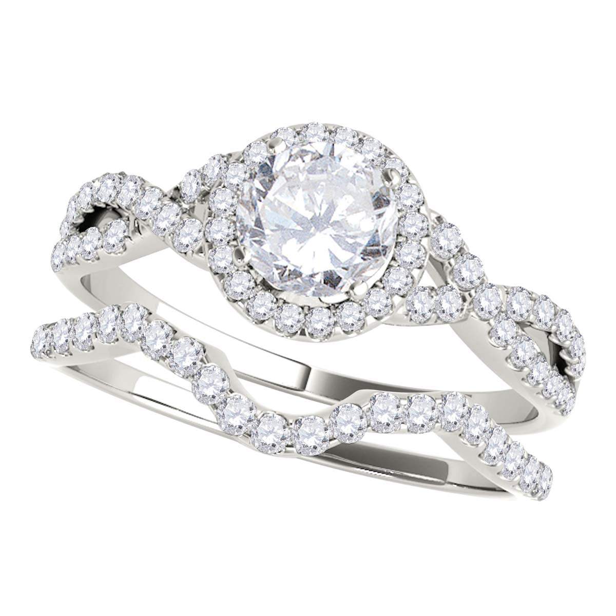 Mauli Jewels 0.50 Carat Lab Grown Diamond Halo Bridal Set in 14K White, Rose & Yellow Gold, Matching Engagement & Wedding Ring Set