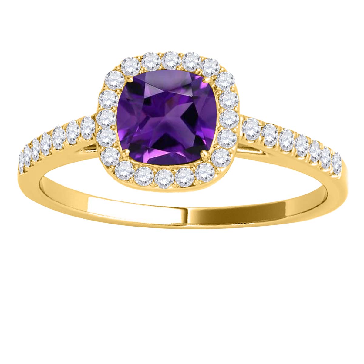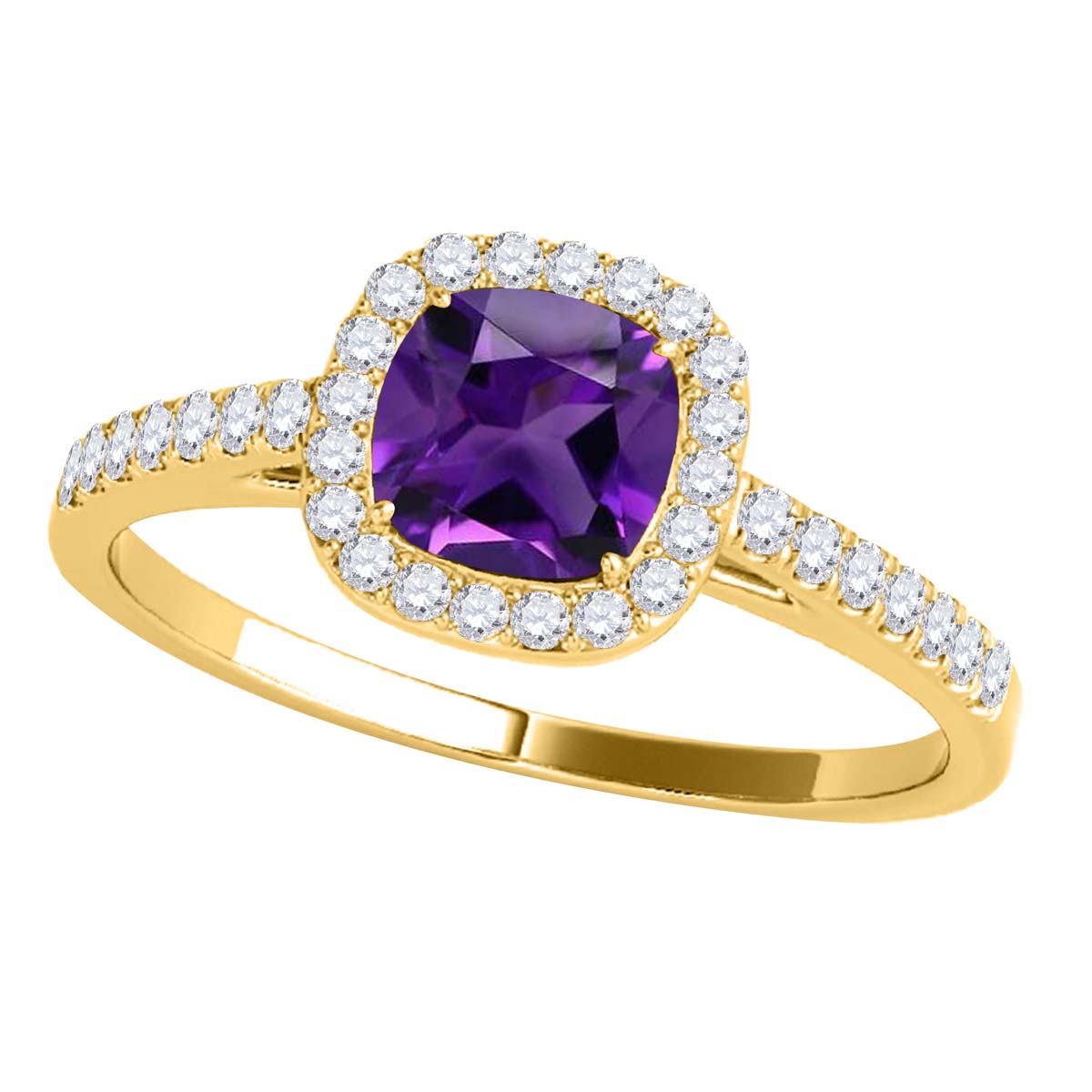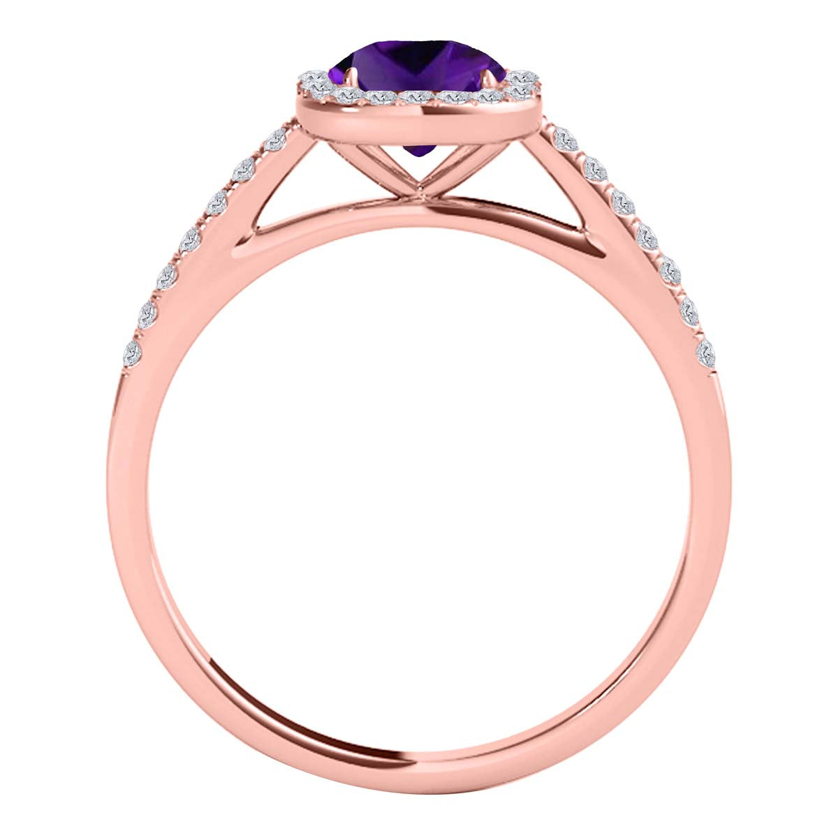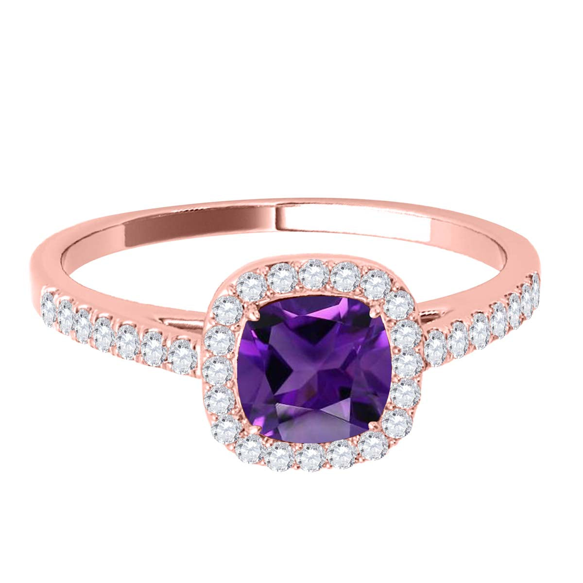 Mauli Jewels 1.15 CT Natural Amethyst & Diamond Ring in 10K Rose White & Yellow Gold | Cushion Cut Center Stone | Prong Set Bridal Ring for Women