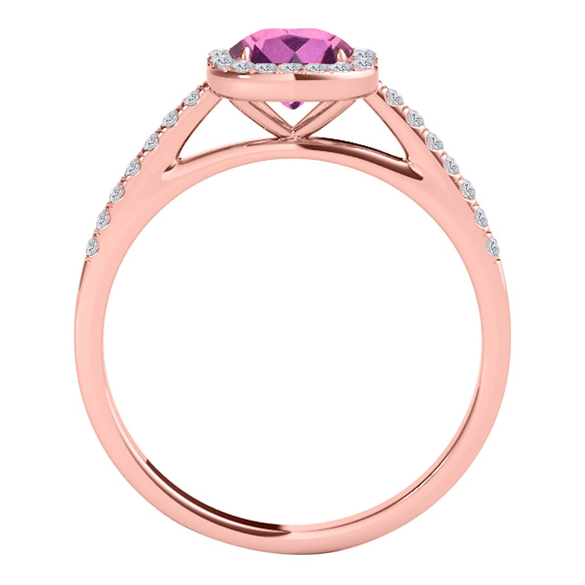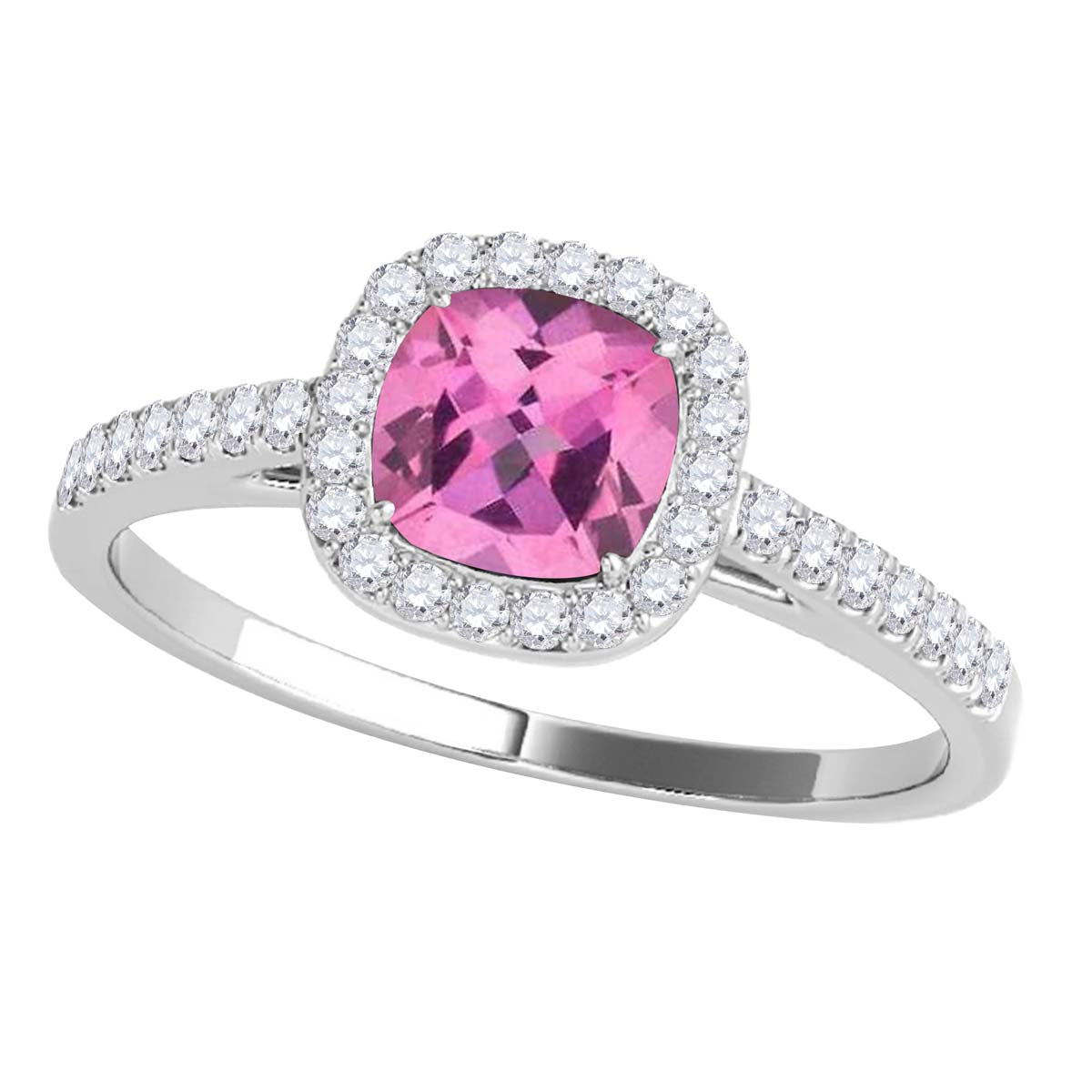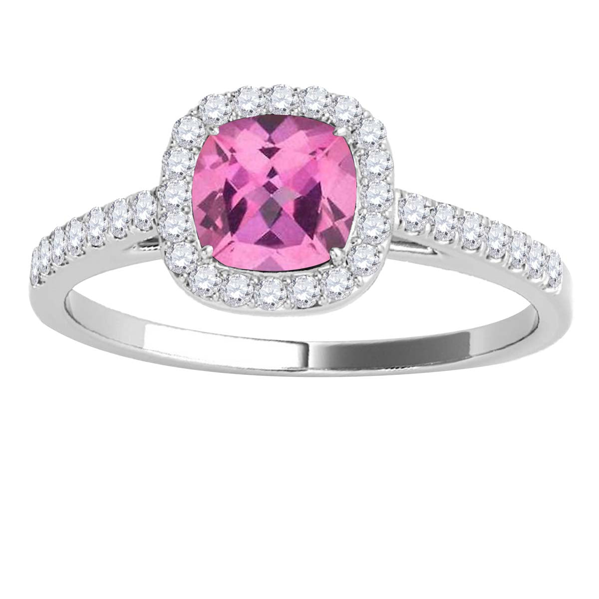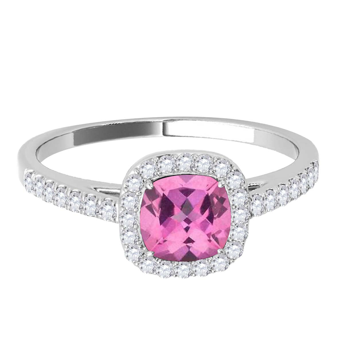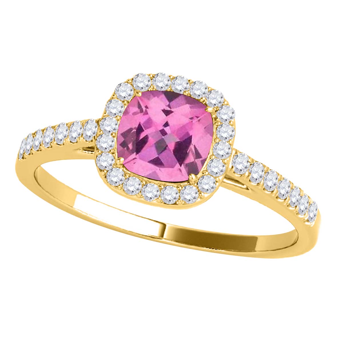 Mauli Jewels 1.15 CT Natural Pink Topaz & Diamond Ring in 10K Rose White & Yellow Gold | Cushion Cut Center Stone | Prong Set Bridal Ring for Women