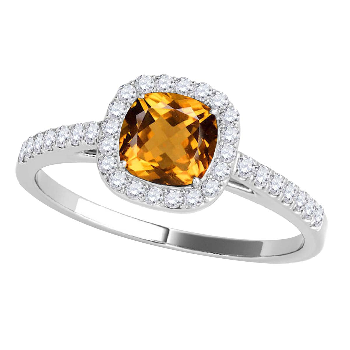 Mauli Jewels 1.15 CT Natural Citrine & Diamond Ring in 10K Rose White & Yellow Gold | Cushion Cut Center Stone | Prong Set Bridal Ring for Women