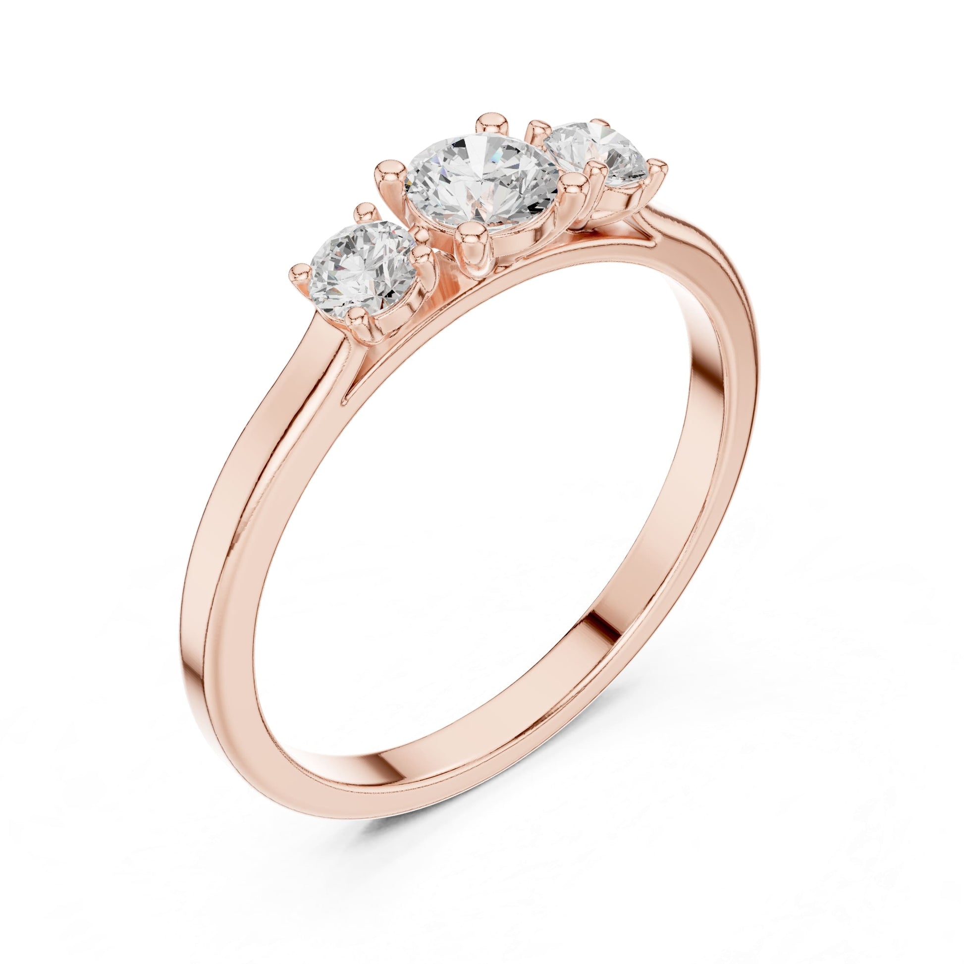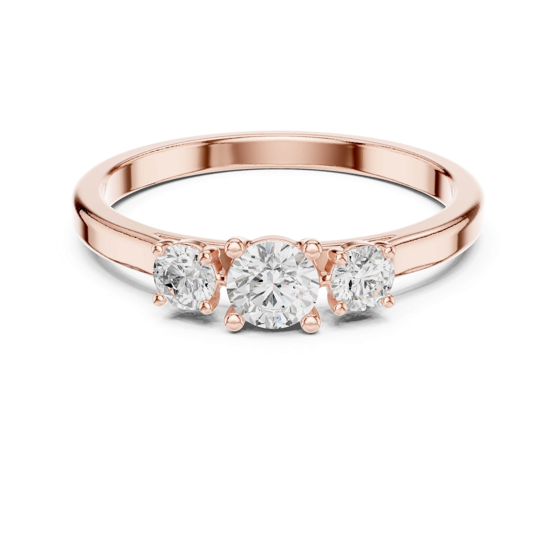 Mauli Jewels 10K Gold 0.50 Ct Three-Stone Round Lab Grown Diamond Engagement Ring for Women in Rose, White & Yellow Gold, EF-VS1 Clarity, Ring Sizes 5-9