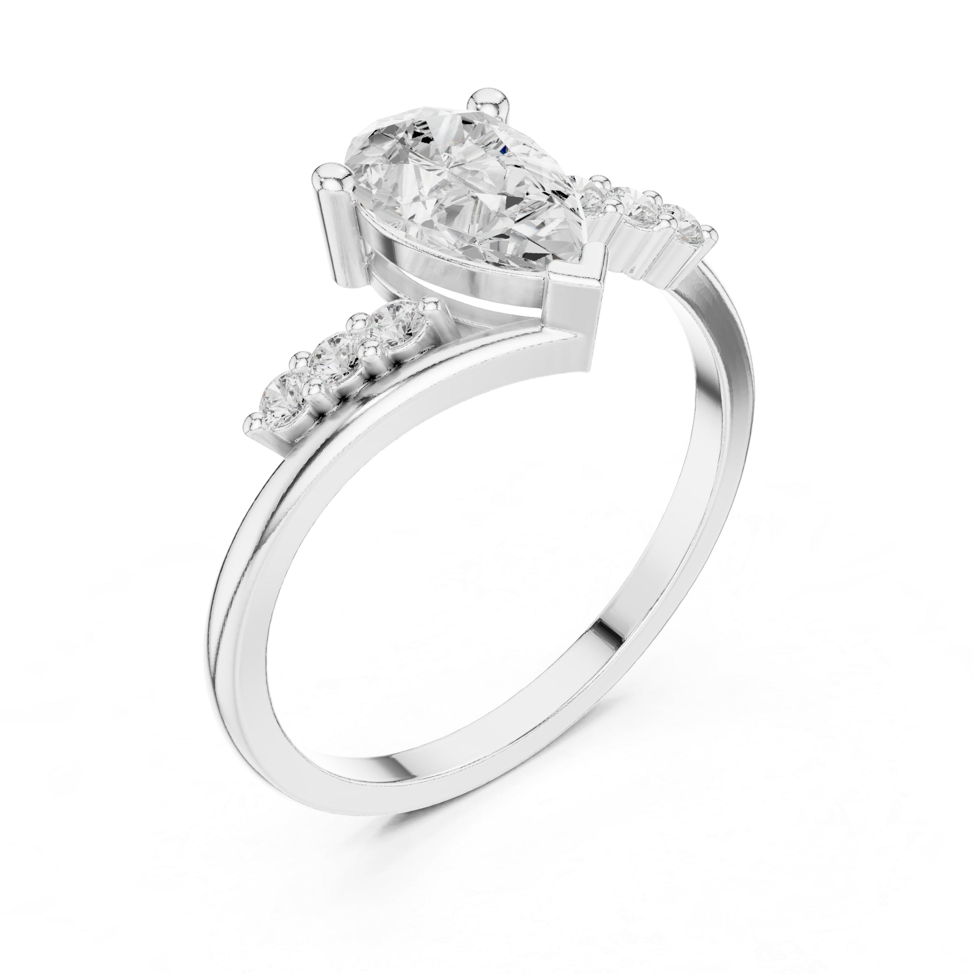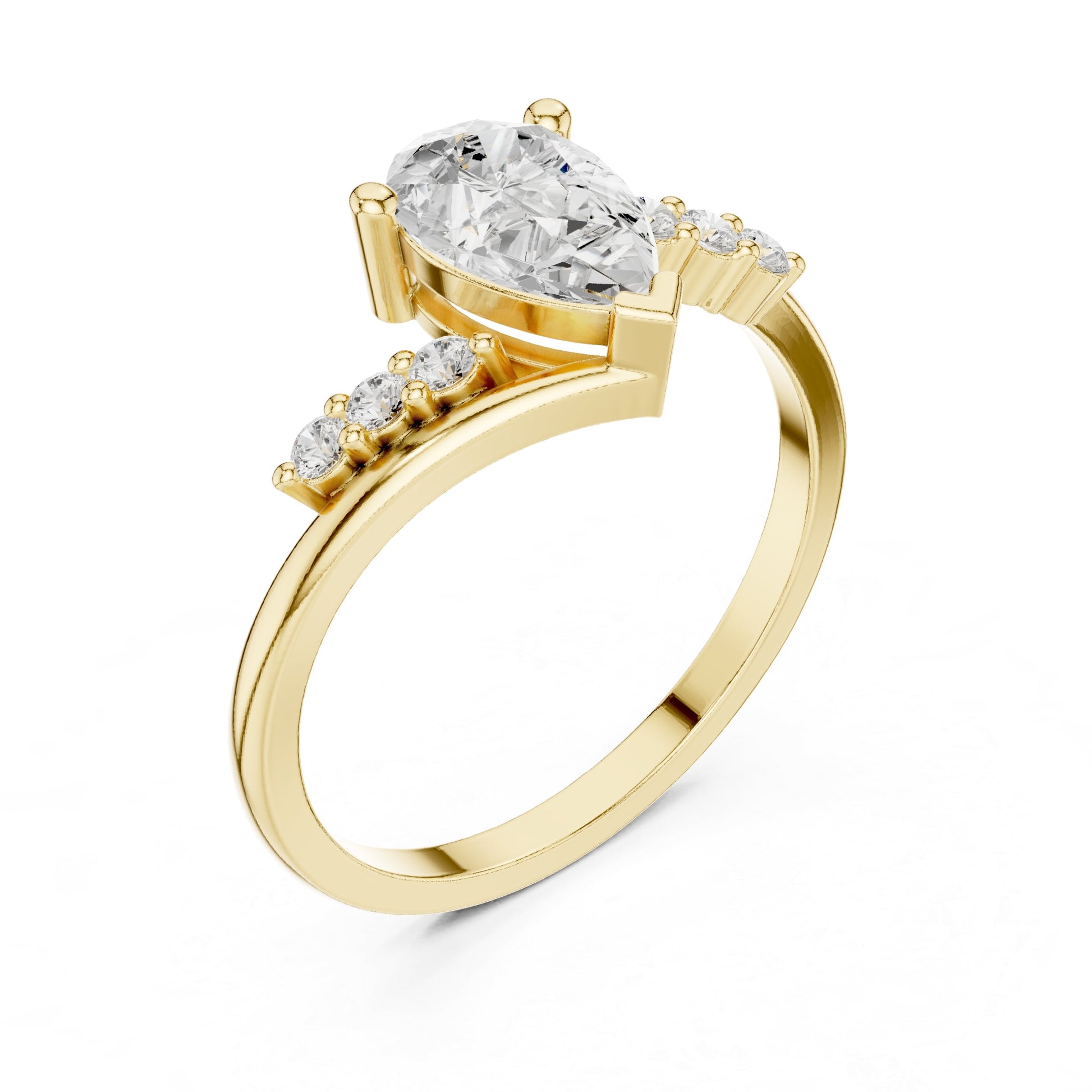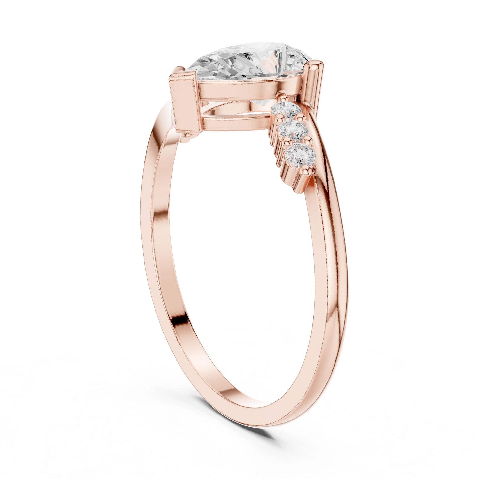 Mauli Jewels 10K Gold 0.85 Ct Lab Grown Diamond Engagement Ring for Women, EF-VS1 Pear Shape Center with Round Accent Stones, Rose, White & Yellow Gold