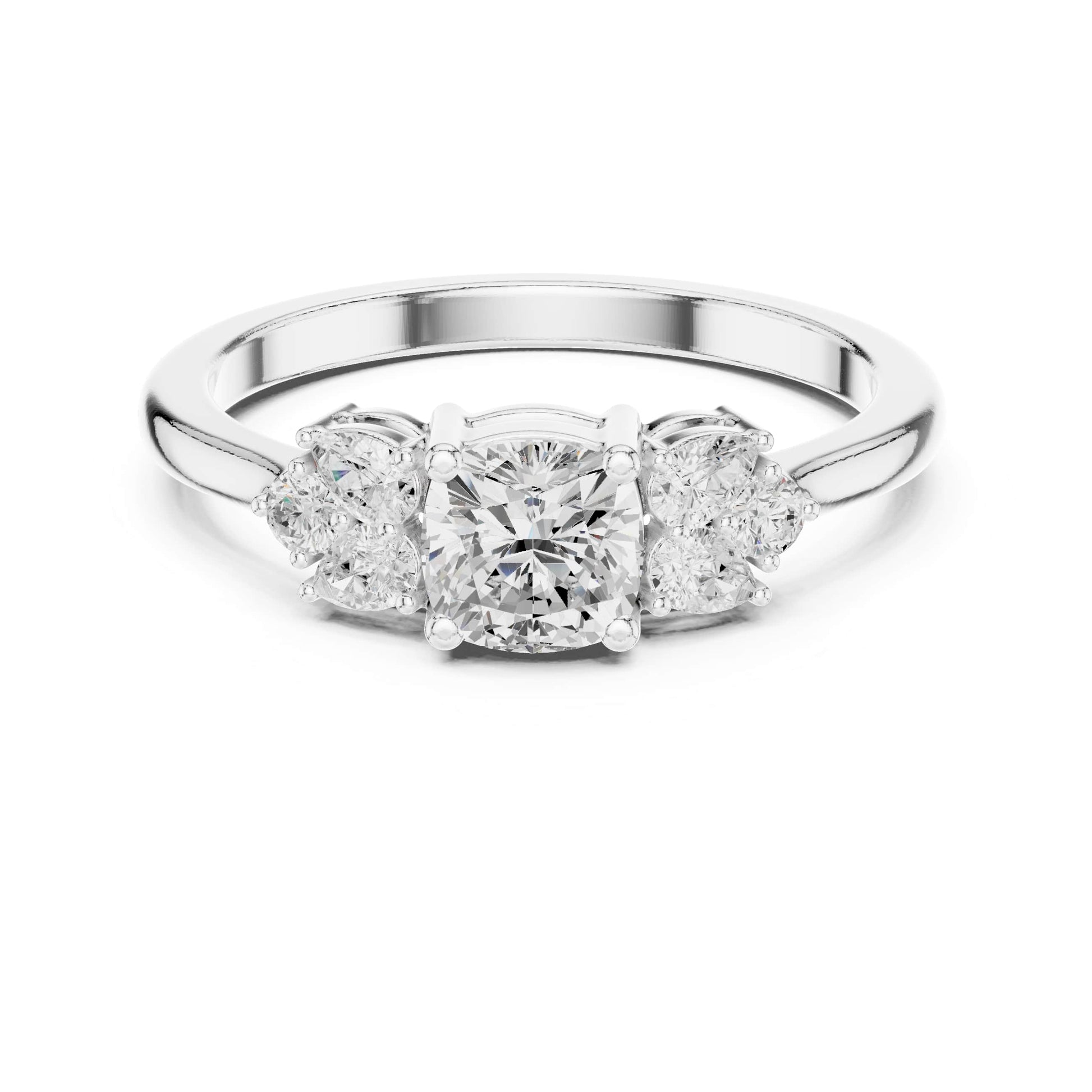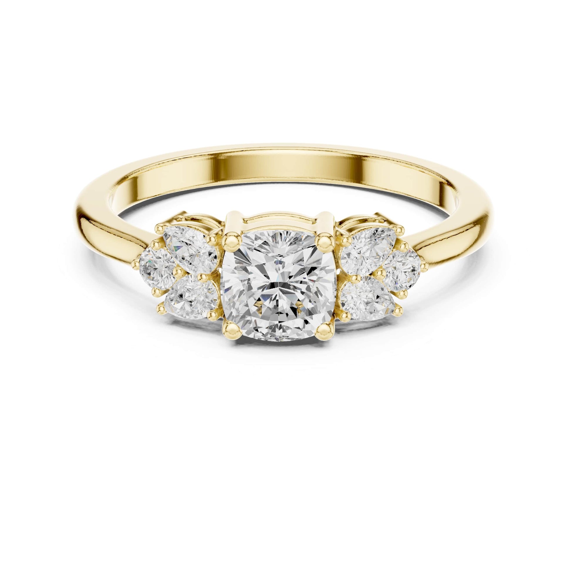 Mauli Jewels 10K Gold 1.0 Ct Lab Grown Diamond 7-Stone Cushion Cut Engagement Ring for Women | EF-VS1 Clarity | Rose, White & Yellow Gold