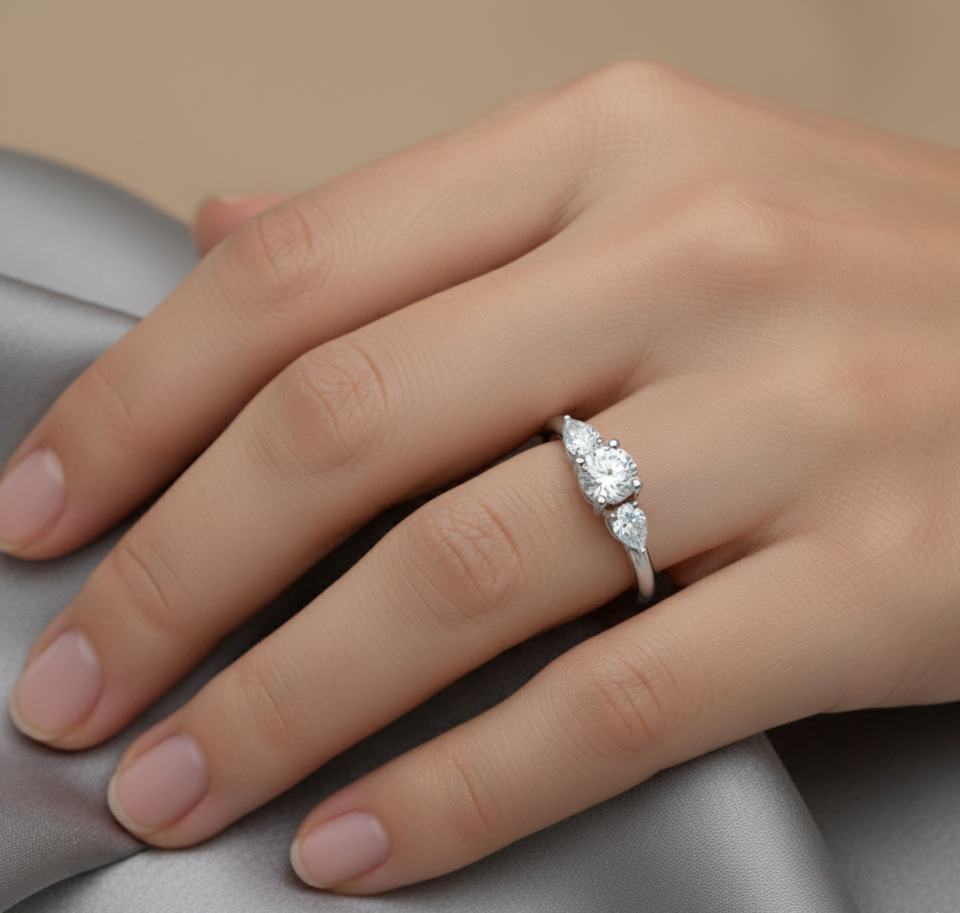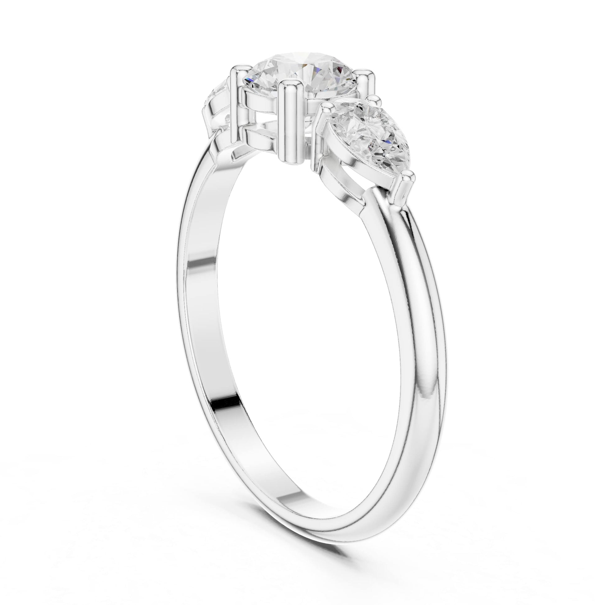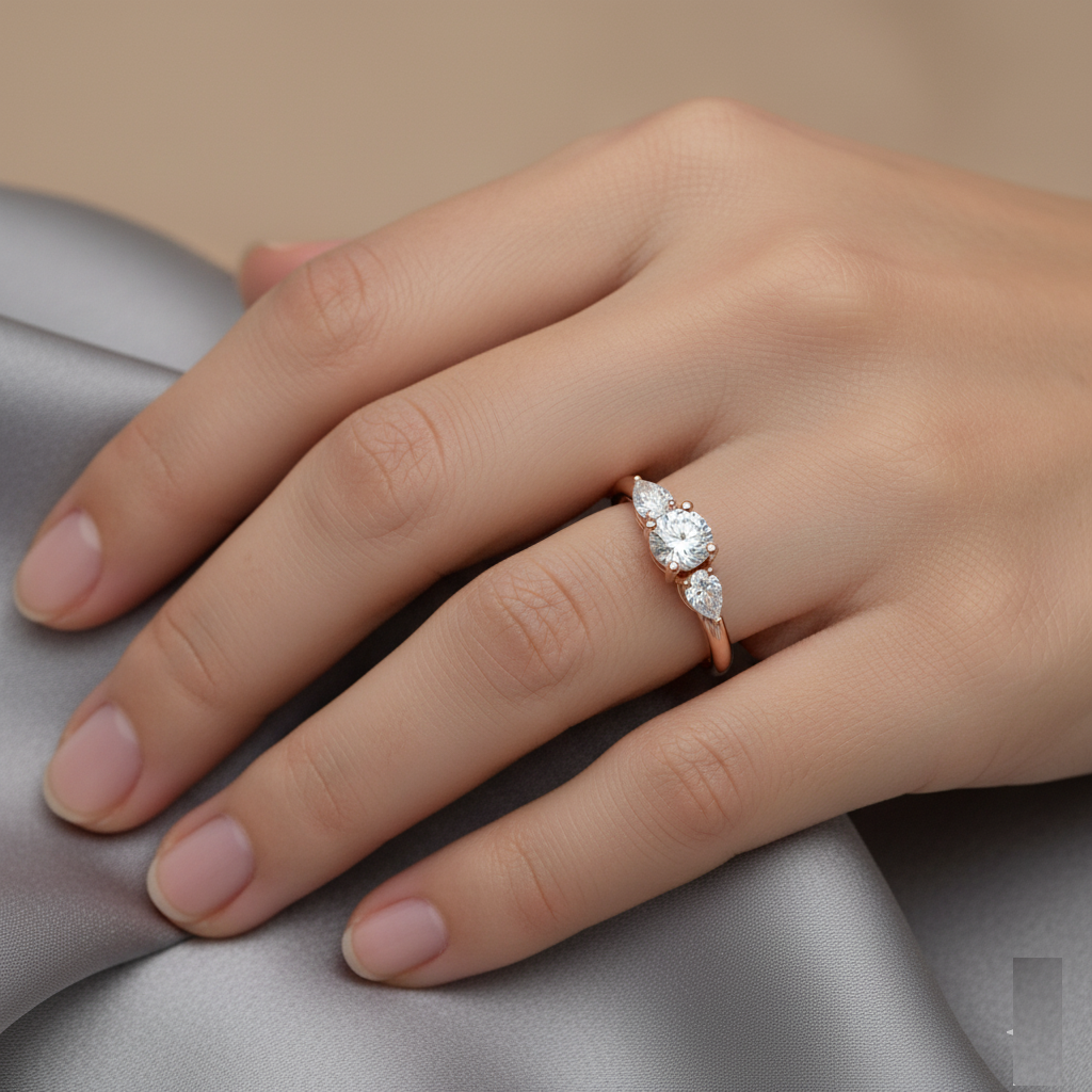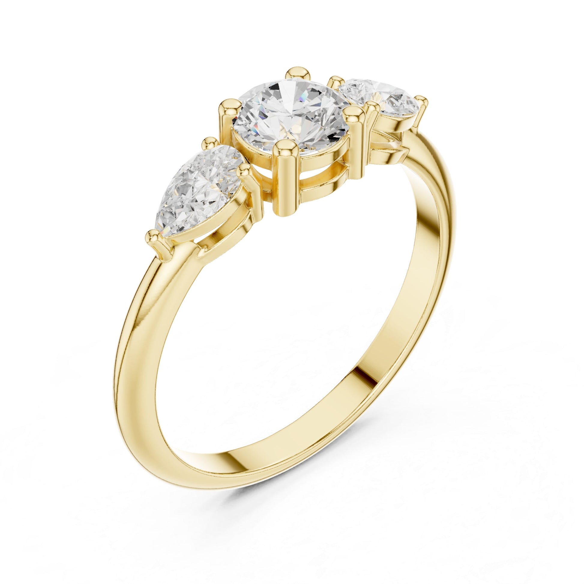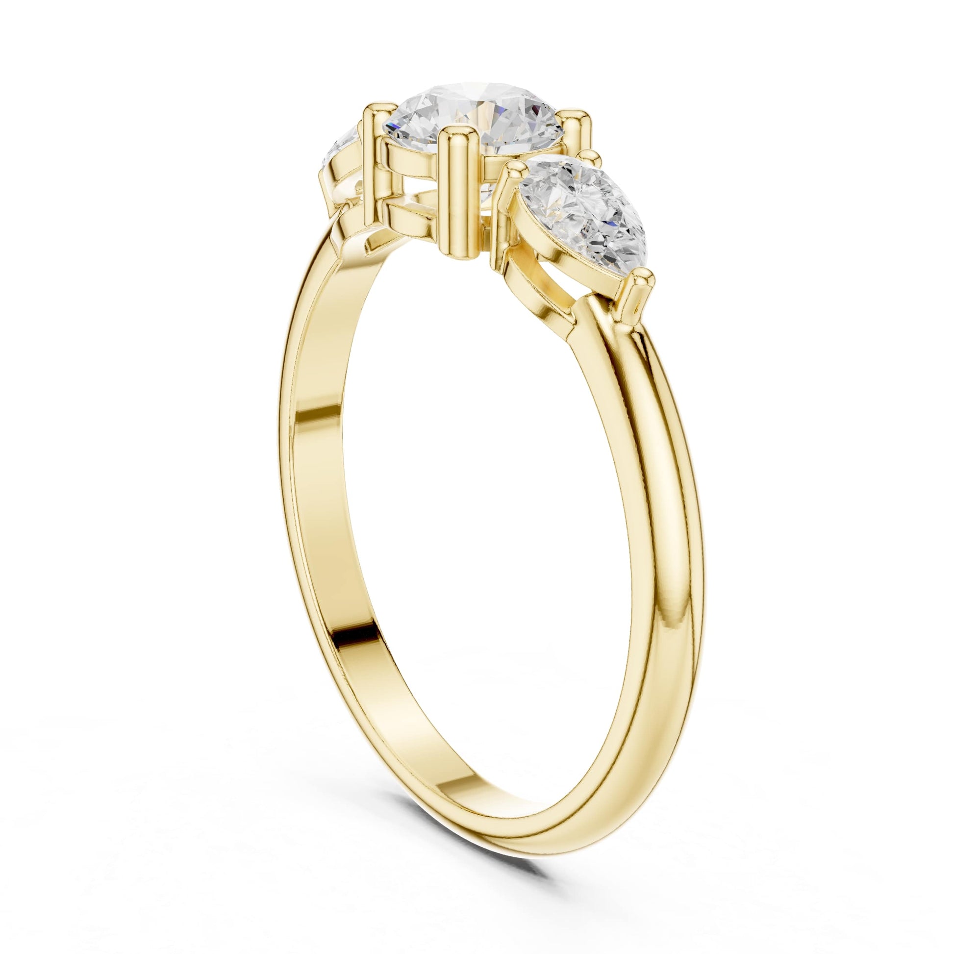 Mauli Jewels 10K Gold 1.00 Ct Lab Grown Diamond 3-Stone Engagement Ring for Women | EF-VS1 Clarity | Round & Pear Cut Design in Rose, White & Yellow Gold, Ring Sizes 5-9