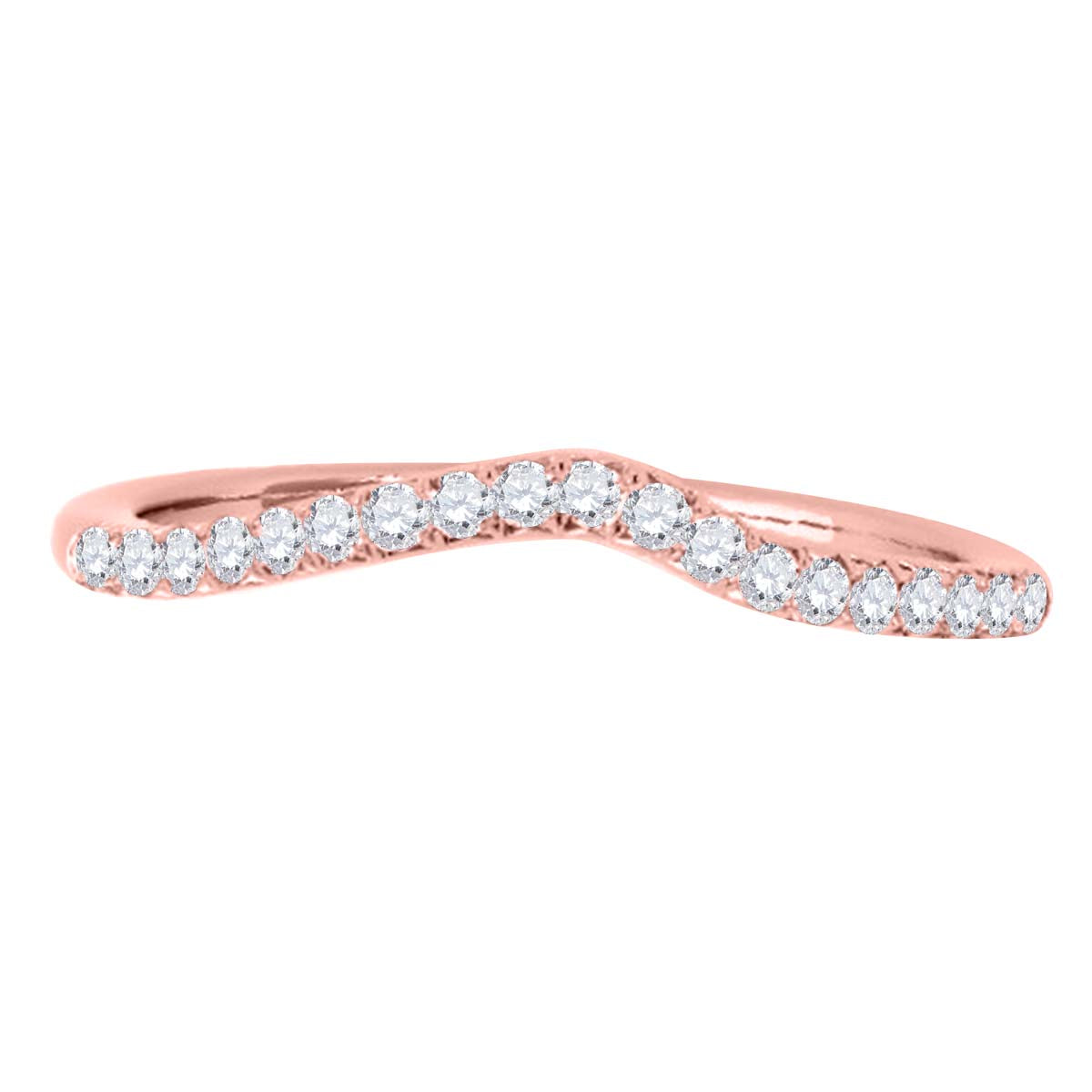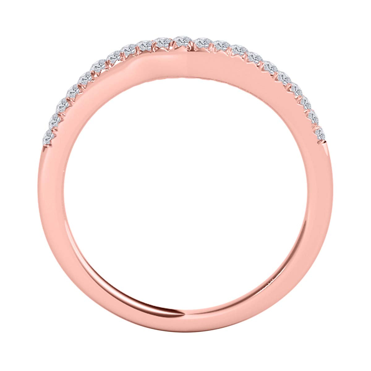 MauliJewels 0.25 CT Natural Diamond Curvy Wedding Band for Women | Prong-Set 14K Rose White Yellow Gold Ring | Bridal Band