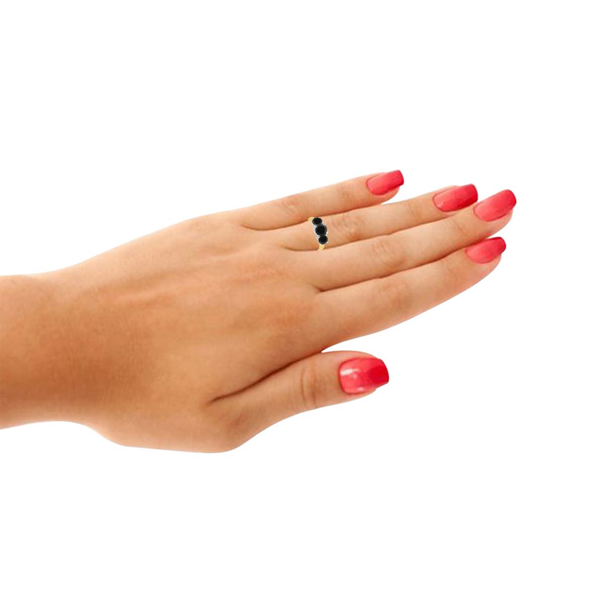 MauliJewels 1 Carat 3 Stone Black Diamond Enagement Ring for Women, Prong-Setting 14K Yellow & White Gold