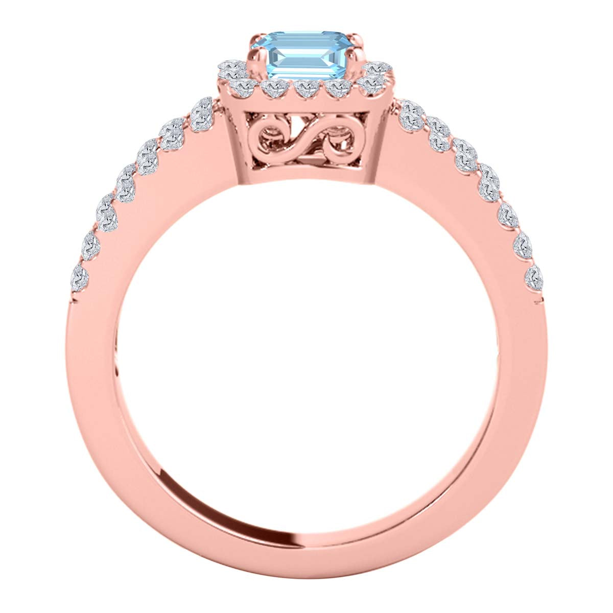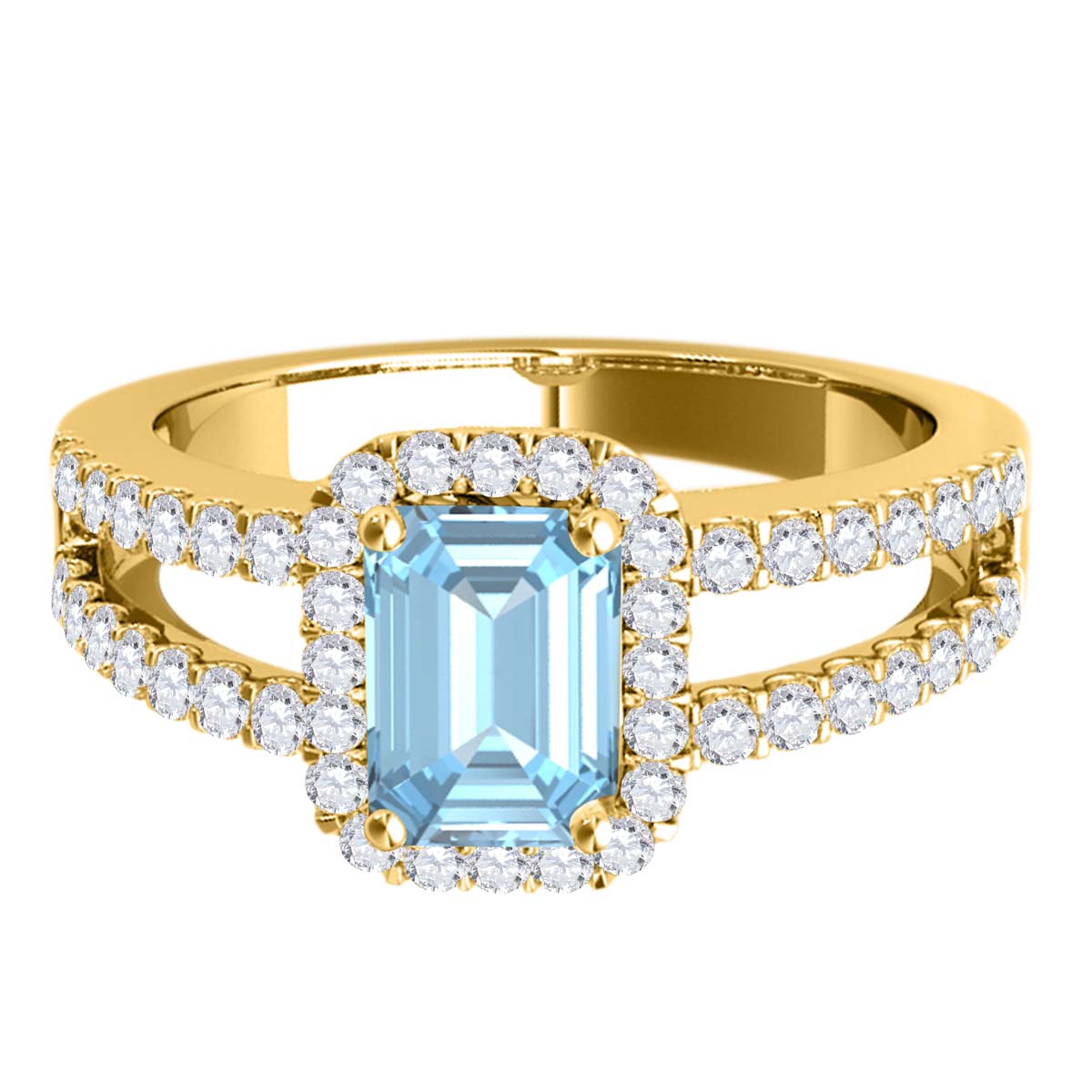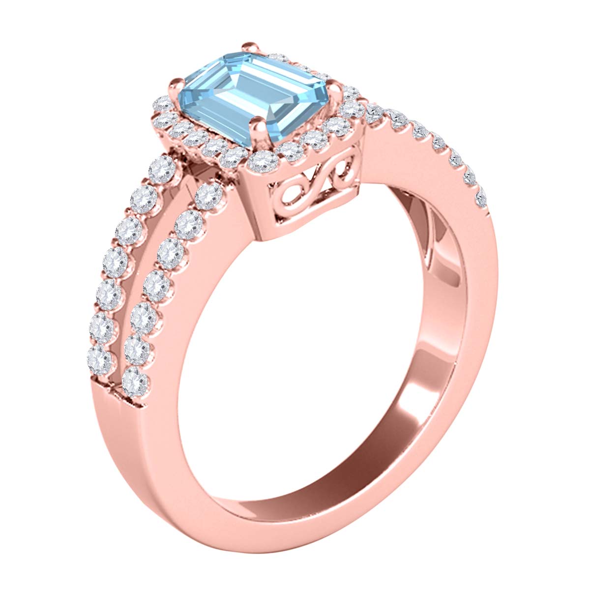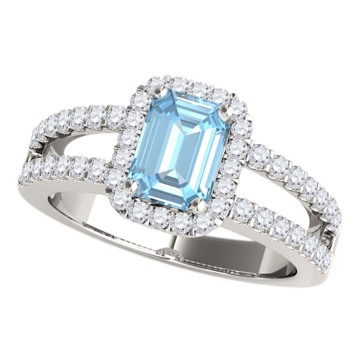 MauliJewels 2.77 Carat Emerald Cut Aquamarine & Lab Grown Diamond Ring for Women in 10K Rose, White & Yellow Gold, Birthstone Ring