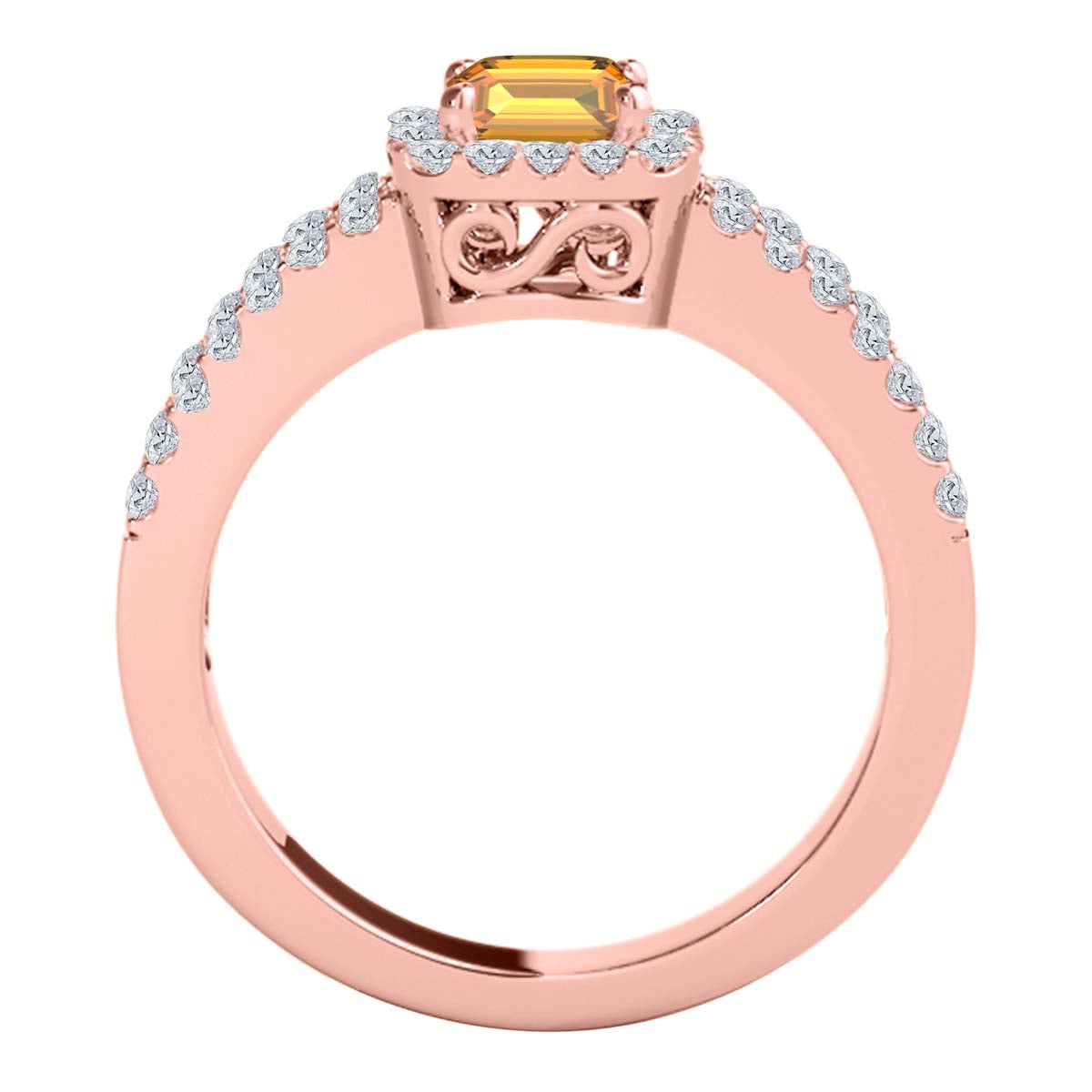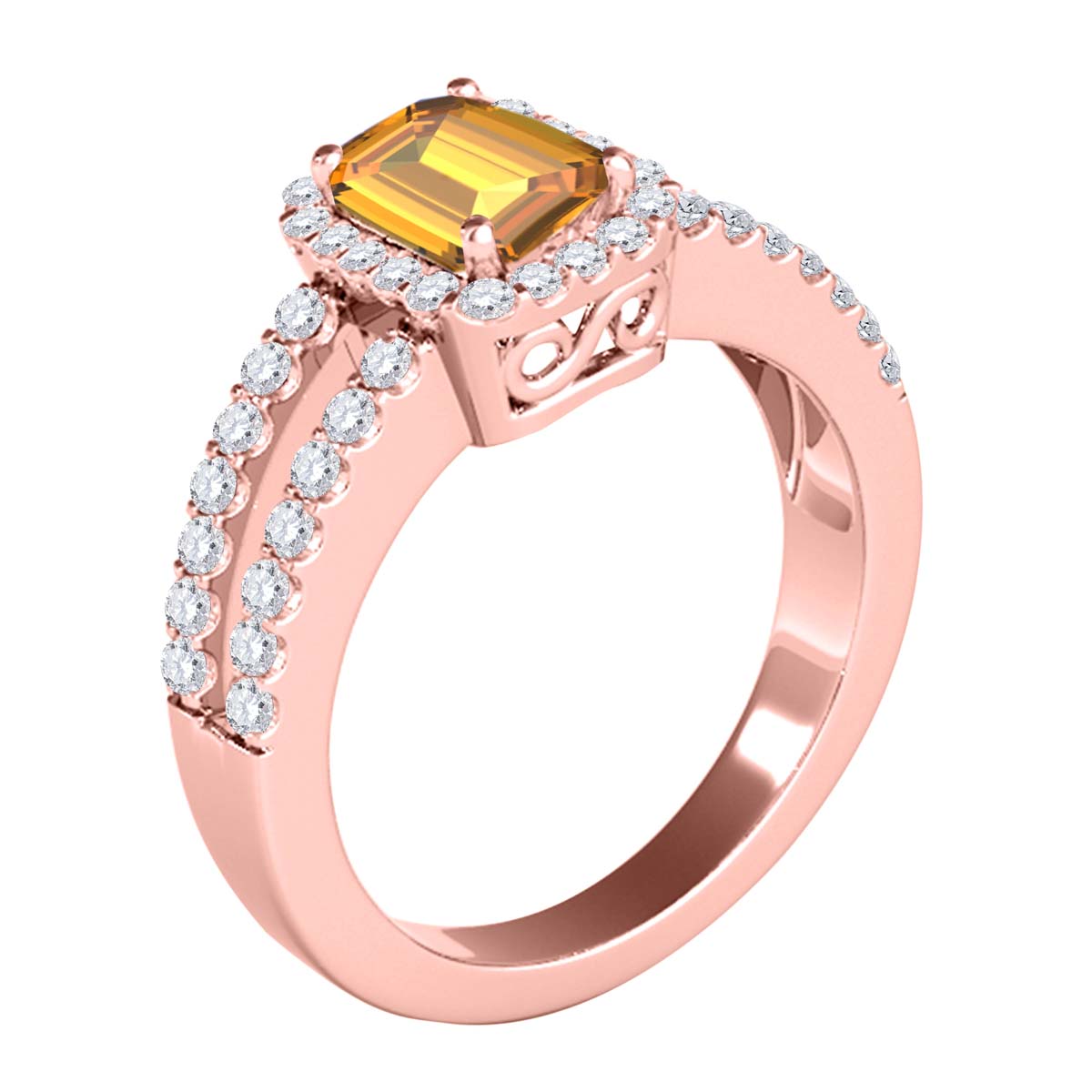 MauliJewels 2.77 Carat Emerald Cut Citrine & Lab Grown Diamond Ring for Women in 10K Rose, White & Yellow Gold, Birthstone Ring