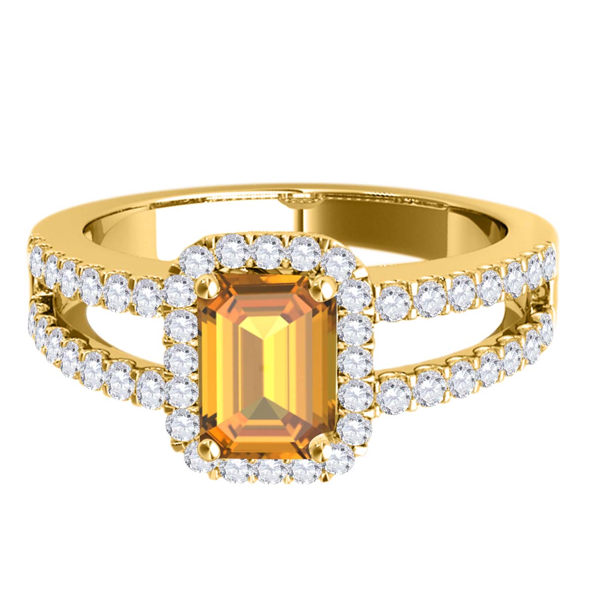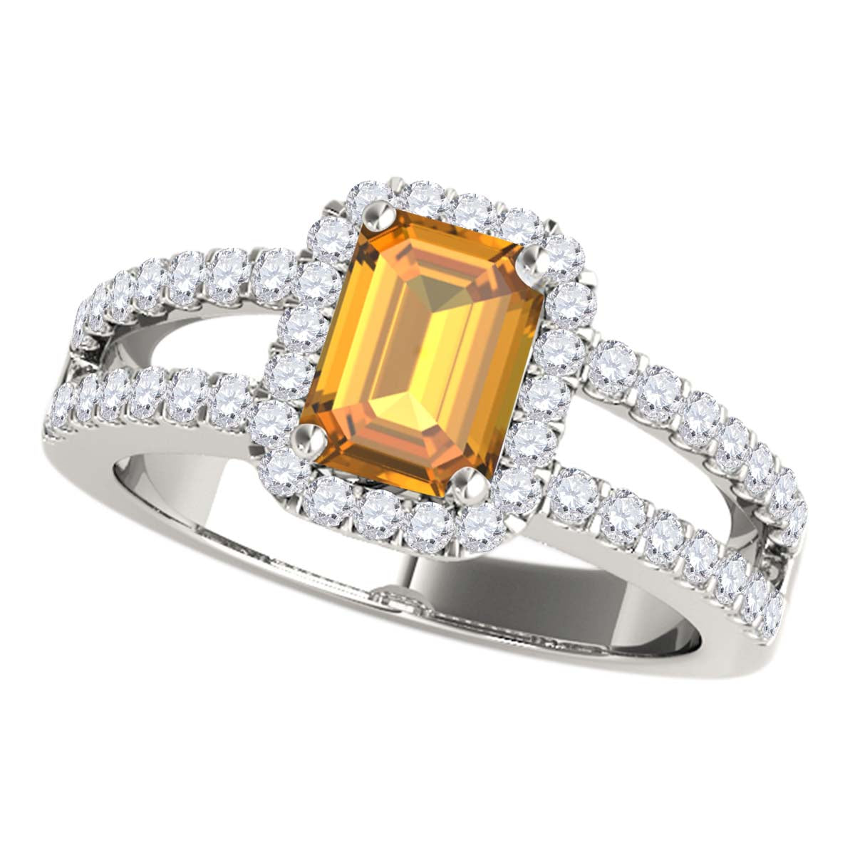• 2.77 Carat Total Weight Ring: Features 2.25 Ct emerald-cut Citrine center stone with 0.52 Ct lab grown diamond accents (53 stones total).