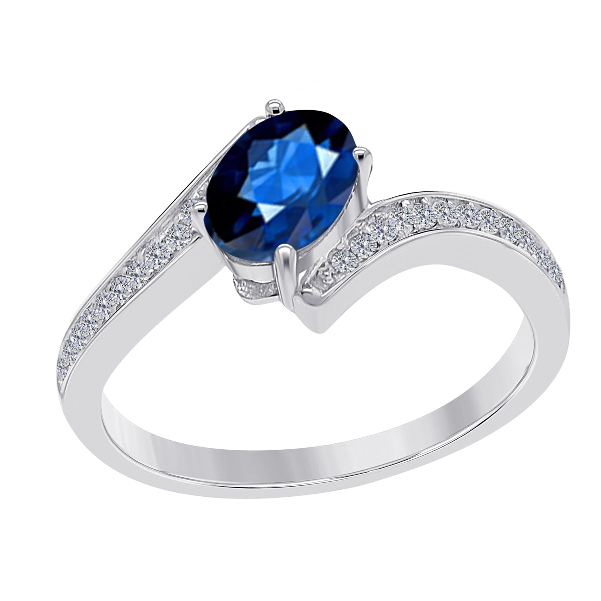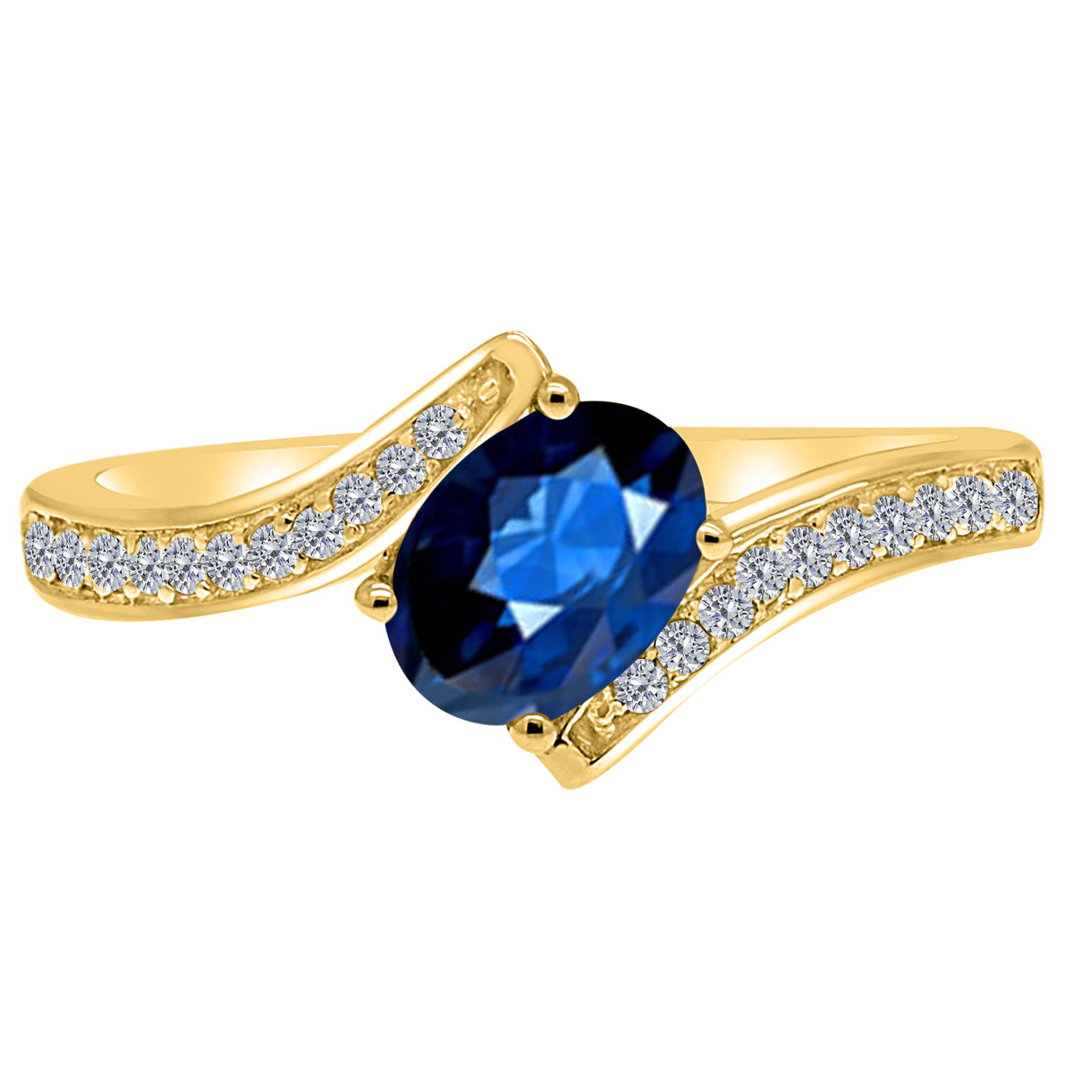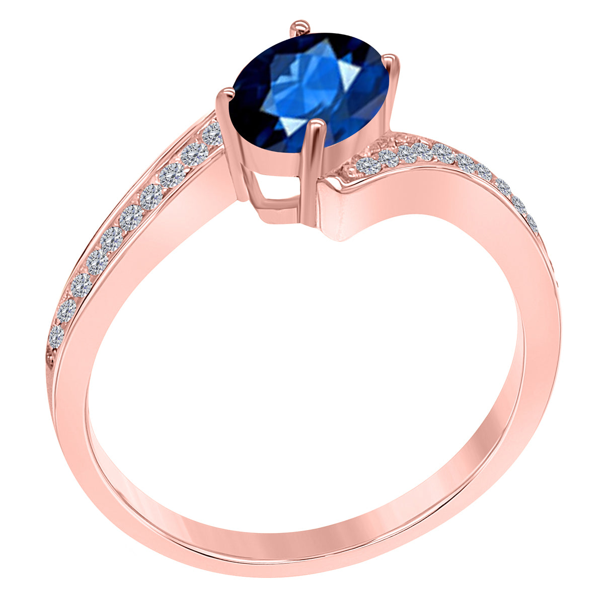 MauliJewels Rings for Women 1.05 Carat Sapphire and Labgrown Diamond Ring Prong Setting in 10K Rose, White & Yellow Gold | Oval Gemstone Wedding Jewelry Collection