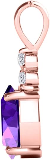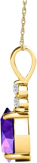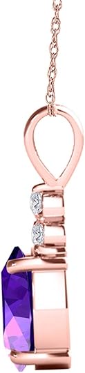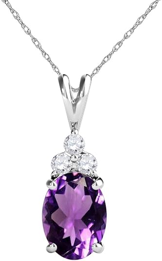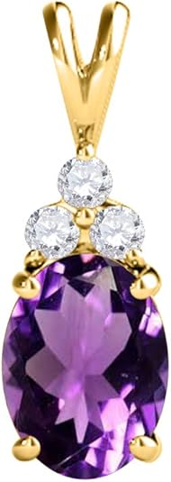 Mauli Jewels 1.25 CT Oval Natural Amethyst & White Diamond Pendant | 10K Rose, White, Yellow Gold | 18" Gold Plated Silver Chain | Antique Style Gemstone Necklace