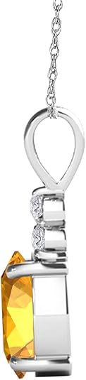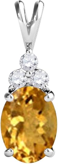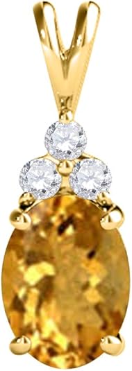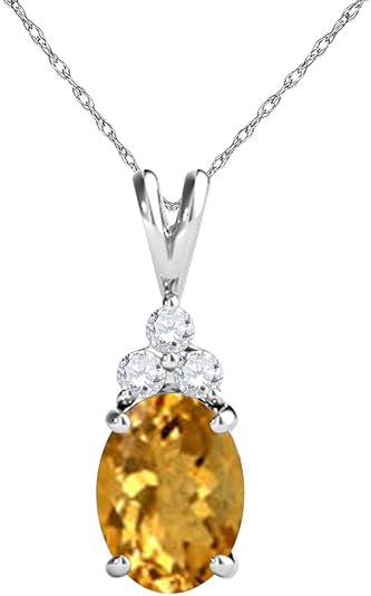Mauli Jewels 1.25 CT Oval Natural Citrine & White Diamond Pendant | 10K Rose, White, Yellow Gold | 18" Gold Plated Silver Chain | Antique Style Gemstone Necklace
