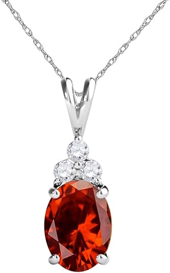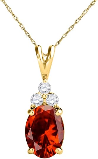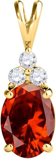 Mauli Jewels 1.25 CT Oval Natural Garnet & White Diamond Pendant | 10K Rose, White, Yellow Gold | 18" Gold Plated Silver Chain | Antique Style Gemstone Necklace