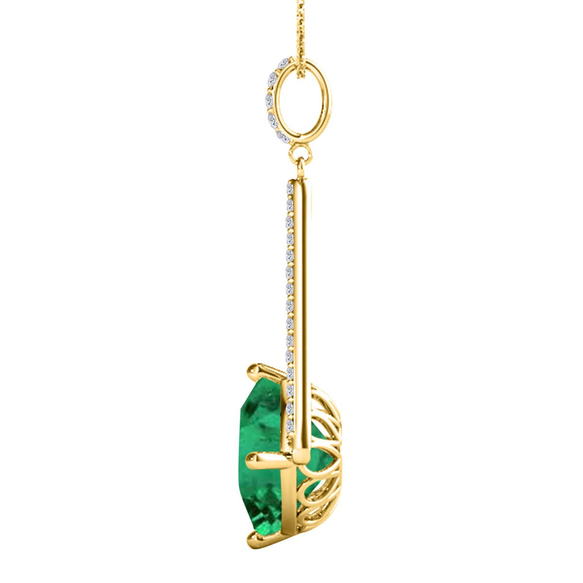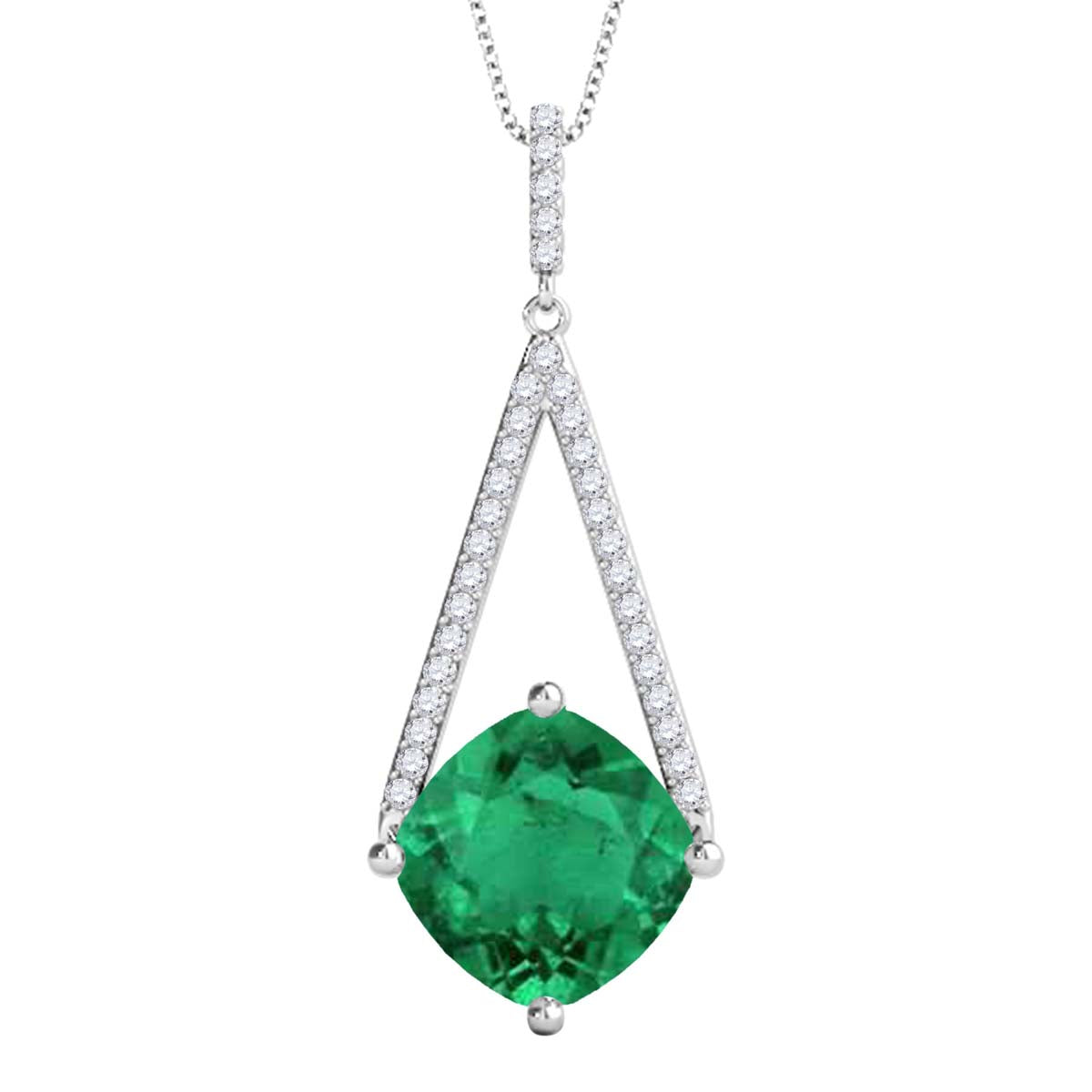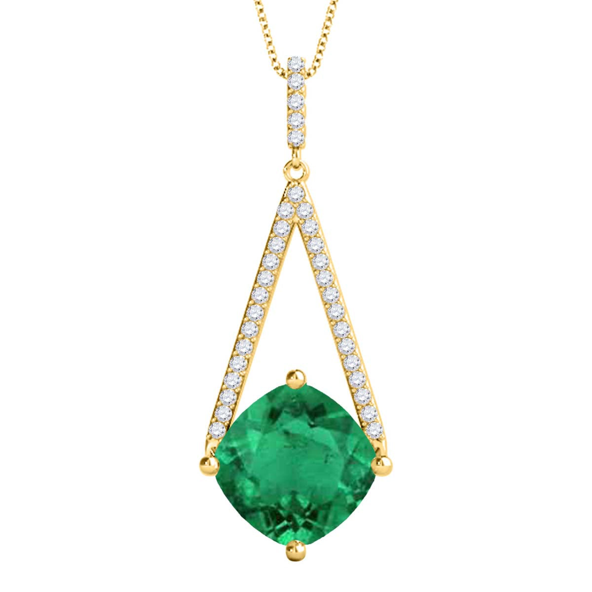 MauliJewels Engagement Necklace for Women 4.10 Carat Cushion Cut Emerald & Diamond Pendant, 4 Prongs, 10K Gold with 18'' Silver Chain