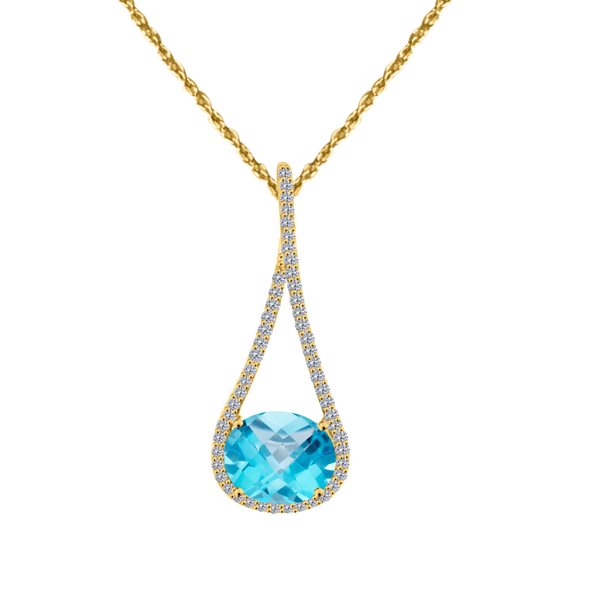 MauliJewels Engagement Necklace for Women 4.81 Carat Diamond and Oval Shape Blue Topaz Pendant, 4 Prong, 10K Gold with 18'' Chain