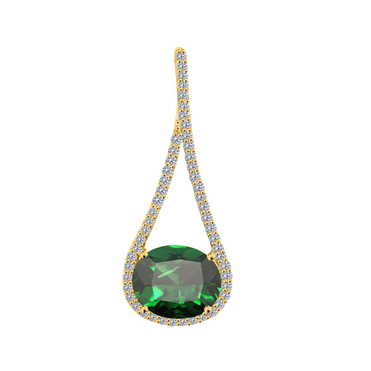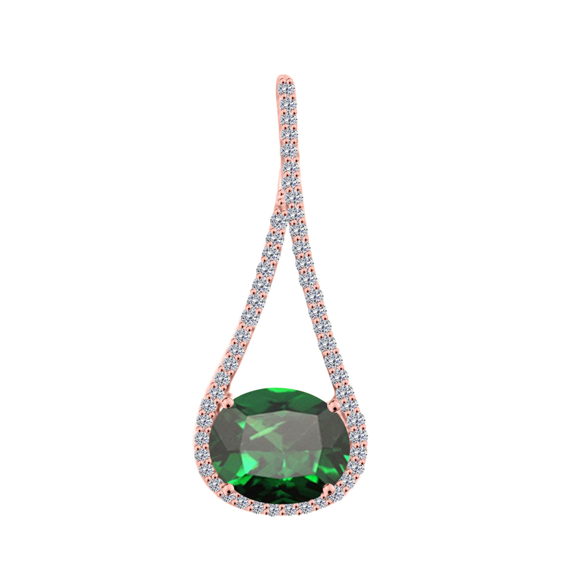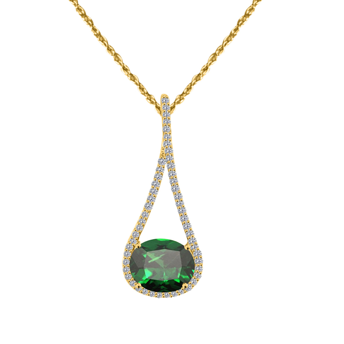 MauliJewels Engagement Necklace for Women 4.81 Carat Diamond and Oval Shape Emerald Pendant, 4 Prong, 10K Gold with 18'' Chain