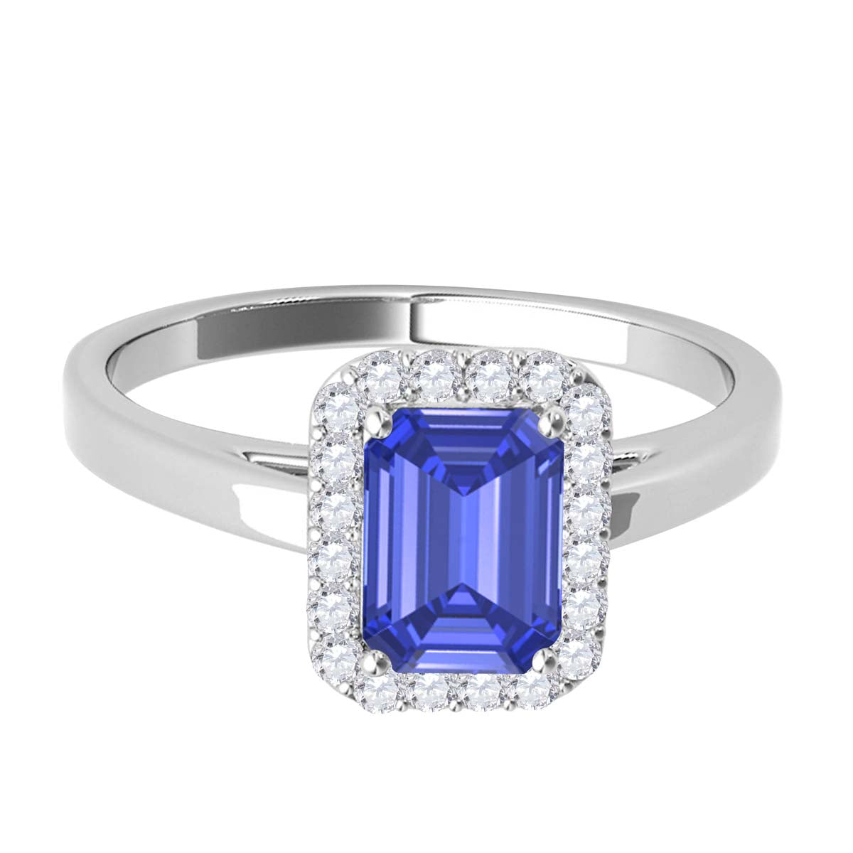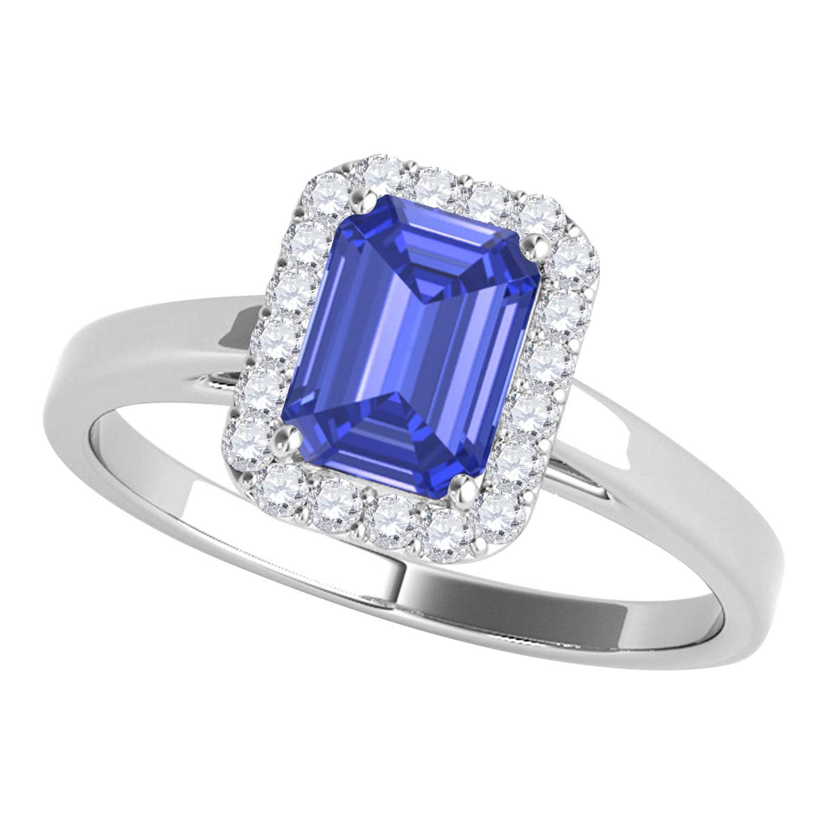 MauliJewels 0.68 Carat Emerald Cut Lab Created Sapphire and Lab Grown Diamond Ring for Women in 10K Rose, White, or Yellow Gold, Prong Setting Engagement Promise Ring