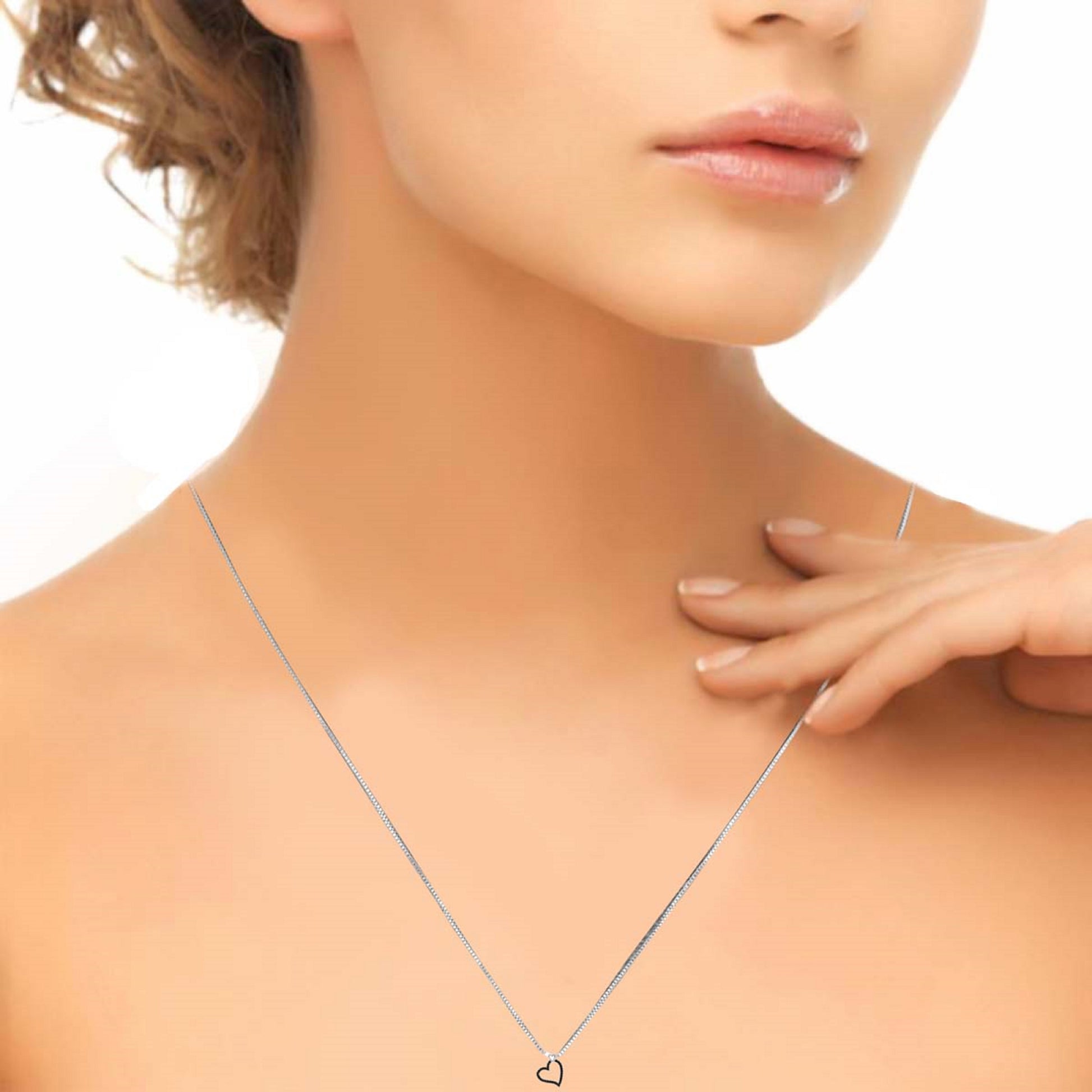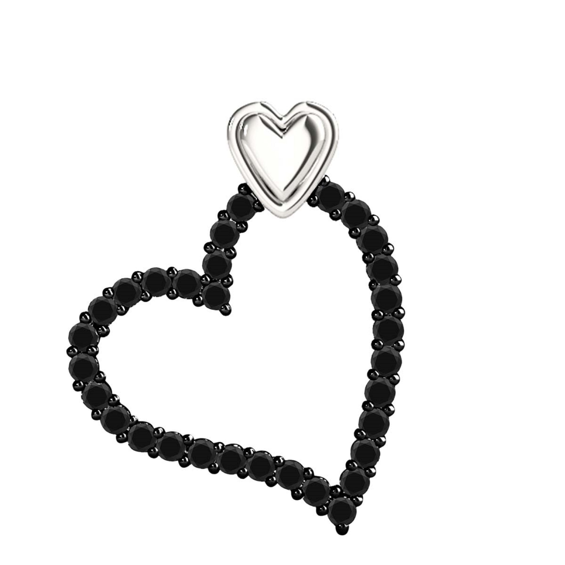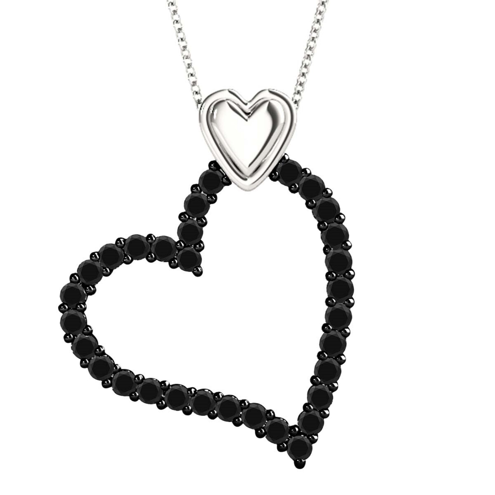Mauli Jewels 1.00 Carat Natural Black Round Diamond Heart Pendant Necklace in 14K Gold with 18" Gold-Plated 925 Sterling Silver Box Chain for Women