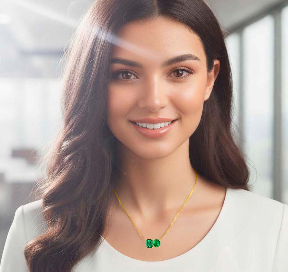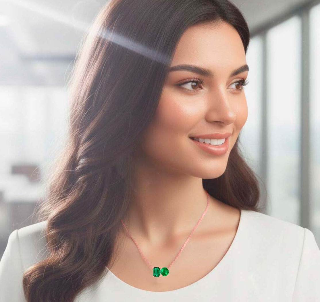 Mauli Jewels 3.00 Carat Lab Created Emerald Toi Et Moi Pendant Necklace for Women | AAA Color | 14K Gold Over 925 Sterling Silver with Silver Cable Chain – Rose, White & Yellow Gold