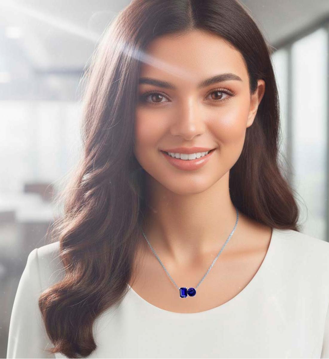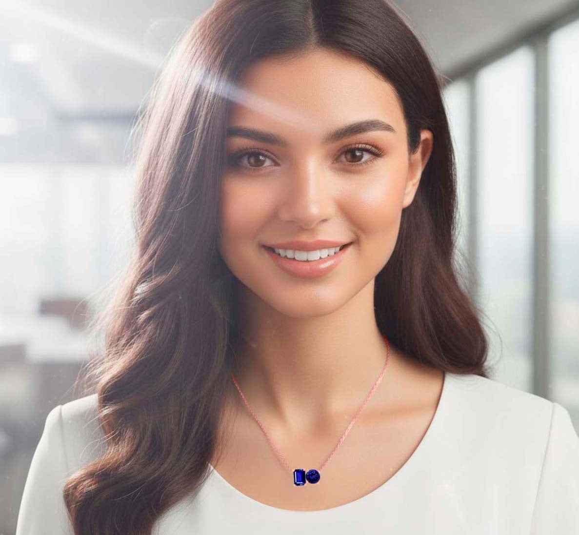 The Mauli Jewels 3.00 Carat Toi Et Moi Pendant Necklace captures the beauty of balance and connection through two radiant lab created Tanzanite's, each weighing 1.50 carats. One stone features a 7mm round cut, while the other displays an elegant 8x6mm emerald cut, showcasing rich green tones with AAA color for vibrant brilliance.