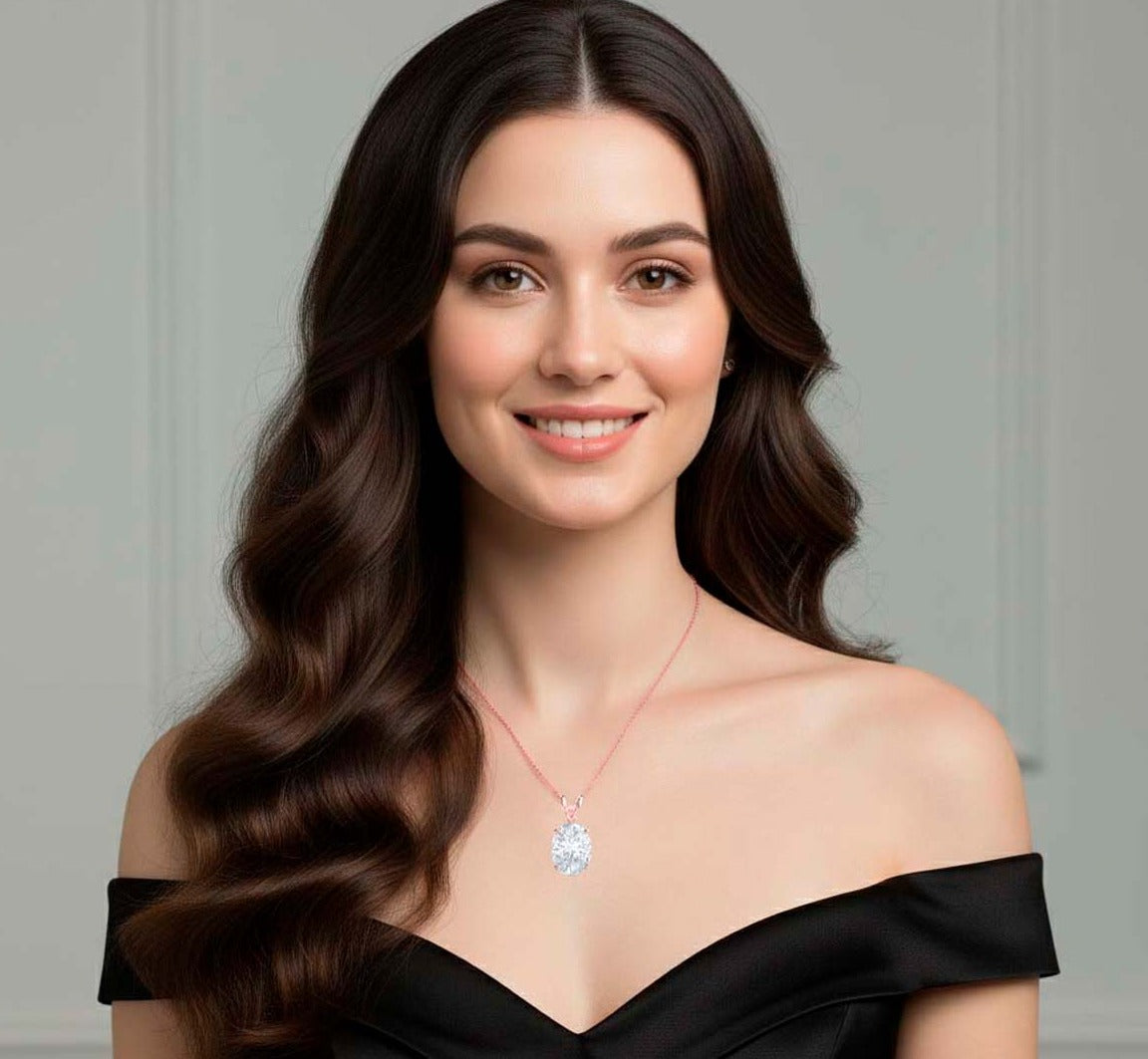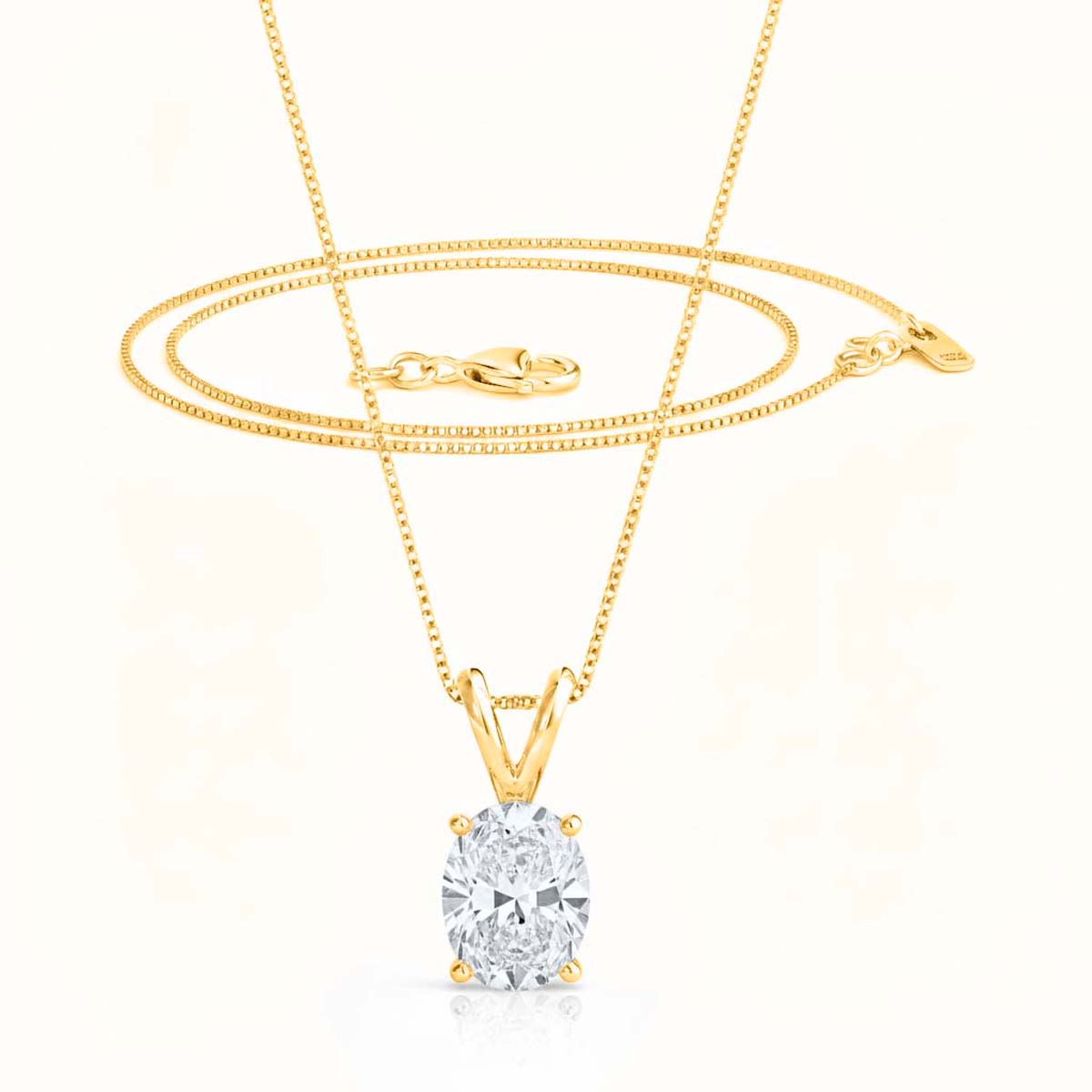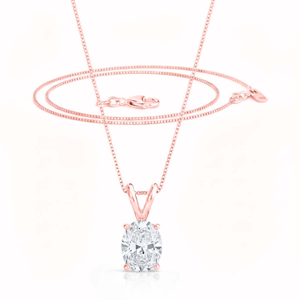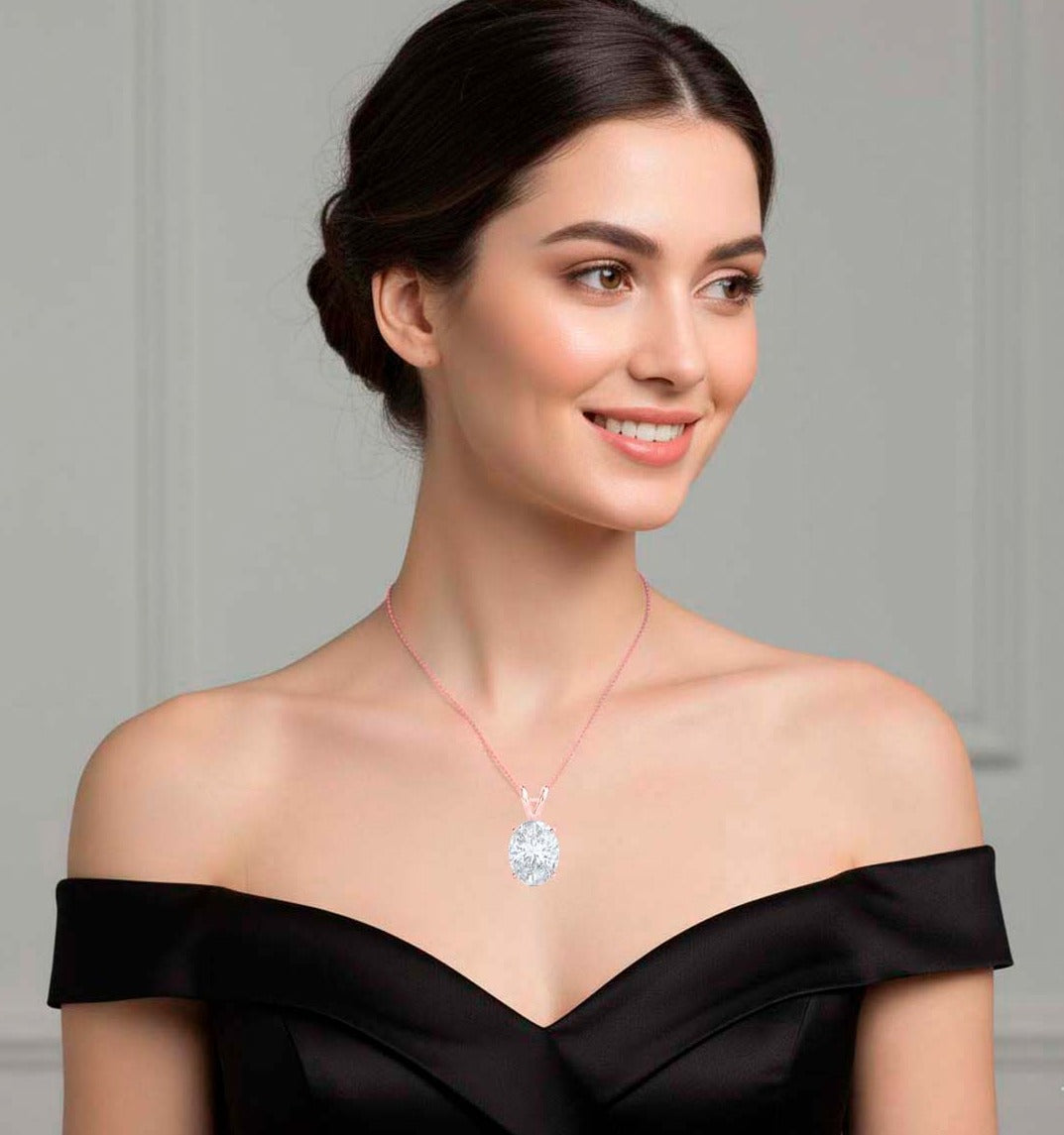 Mauli Jewels 3 Carat Oval Shape Moissanite Solitaire Pendant Necklace for Women | EF-VS1 Clarity | 14K Gold Over 925 Sterling Silver with Cable Chain – Rose, White & Yellow Gold