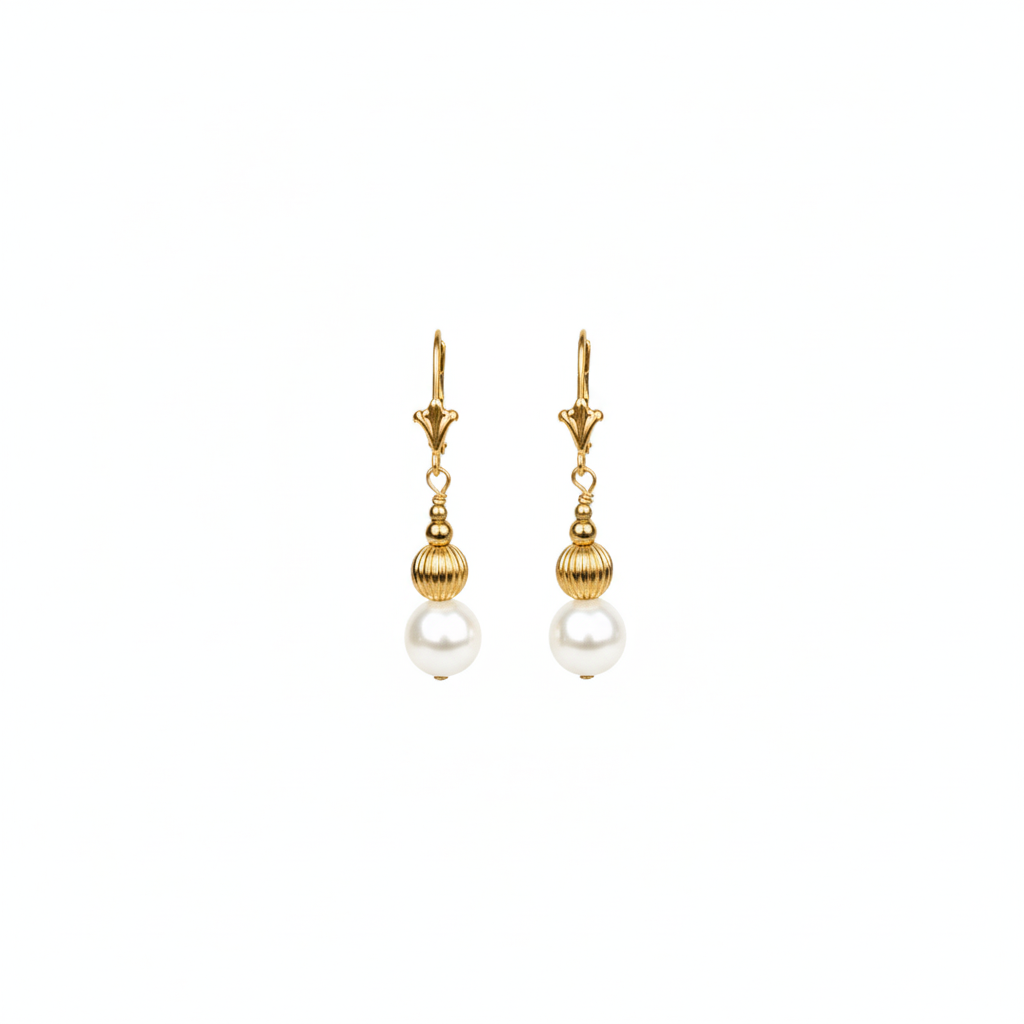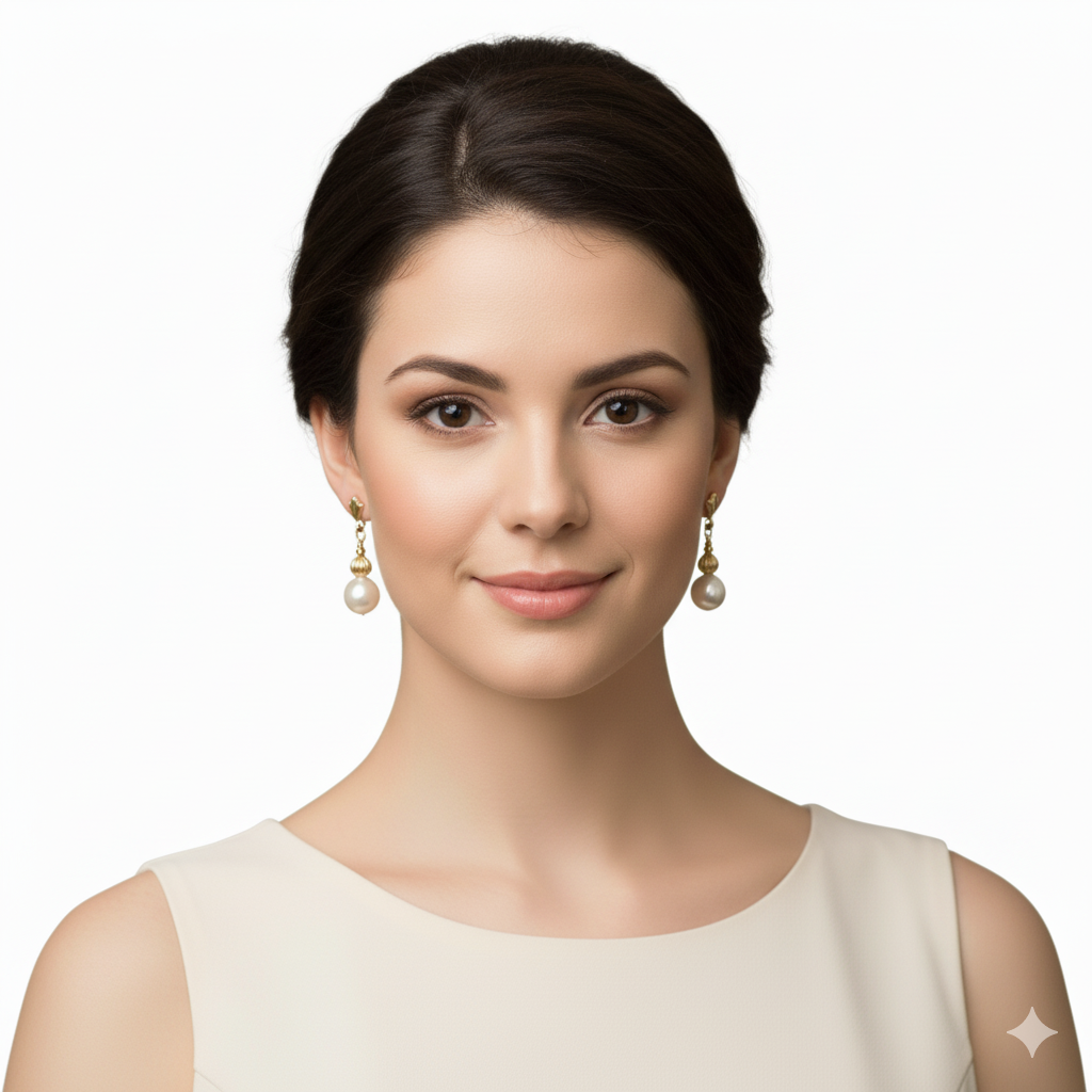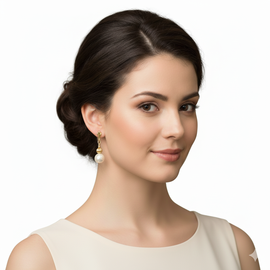 Mauli Jewels 14K Yellow Gold Genuine White Pearl Earrings for Women | Classic Stud and Drop Design, Elegant Bridal Wedding Anniversary Jewelry Gift