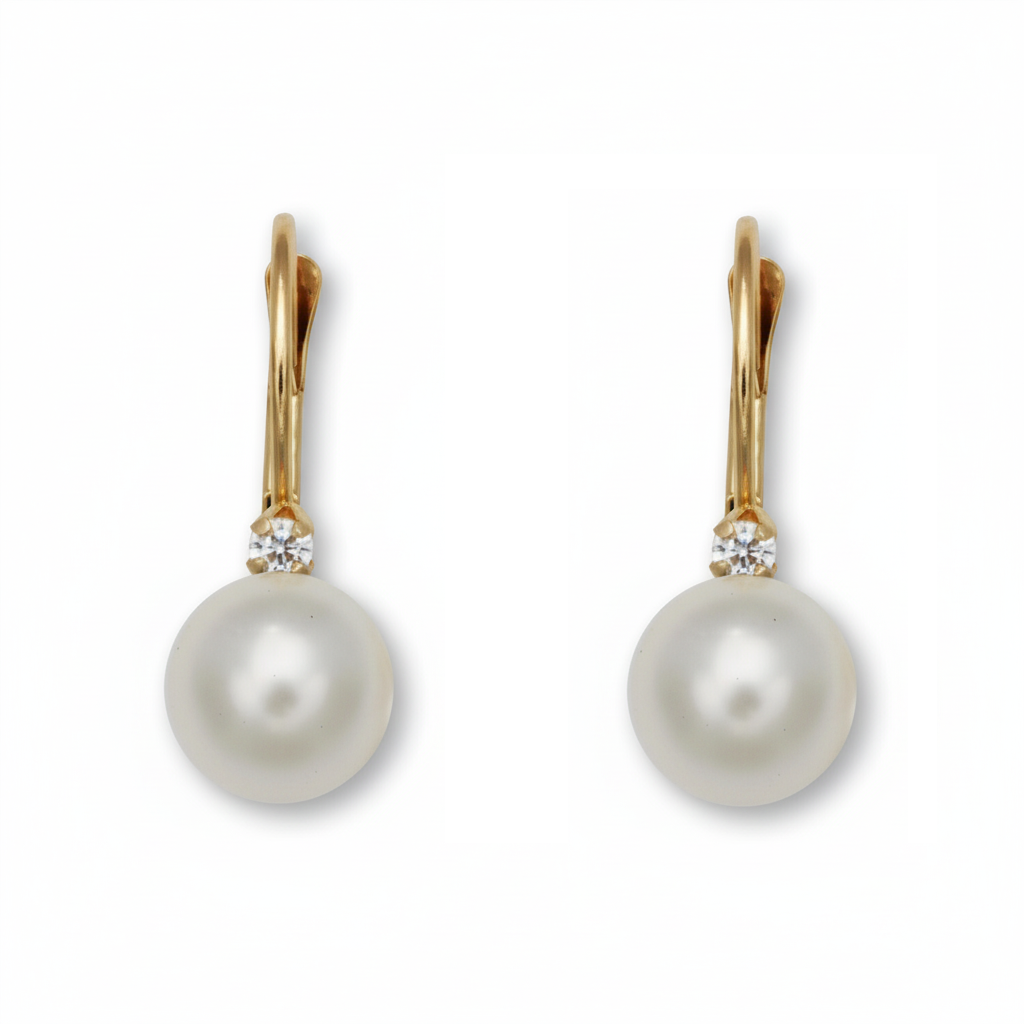 Mauli Jewels 14K Yellow Gold Leverback Earrings for Women with CZ and Freshwater Pearls, Elegant Dangle Drop Earrings, Classic Bridal Jewelry Gift