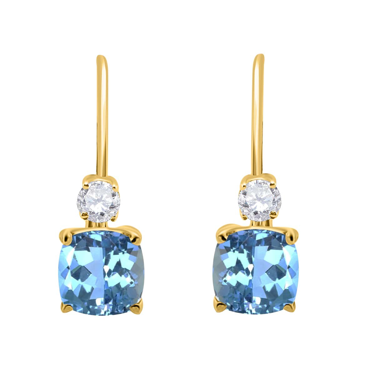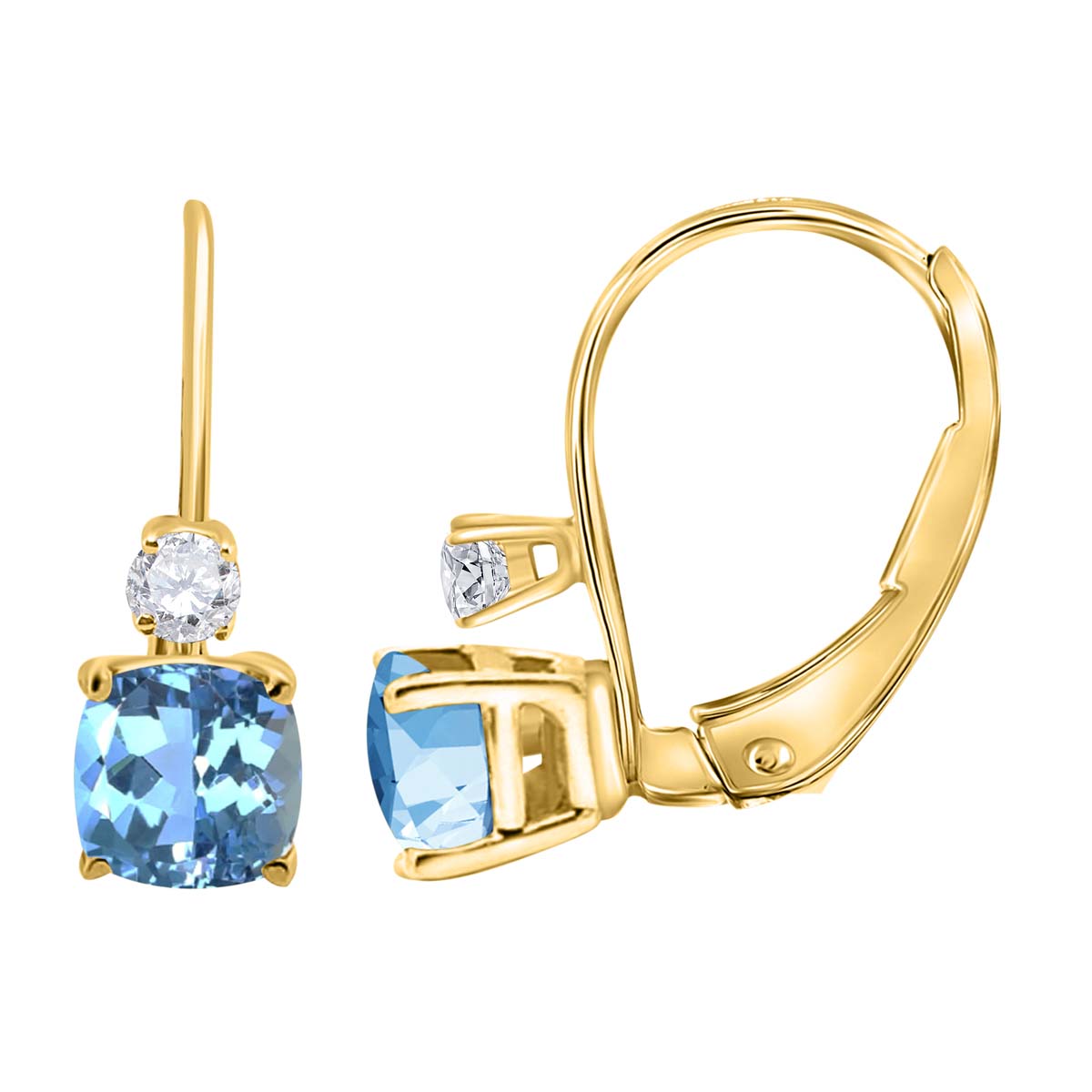 MauliJewels Earrings for Women 2.7 Carat 8x6 Cushion Cut Blue Topaz & Diamond Leverback Earrings, 14K Gold, 4 Prong-Setting