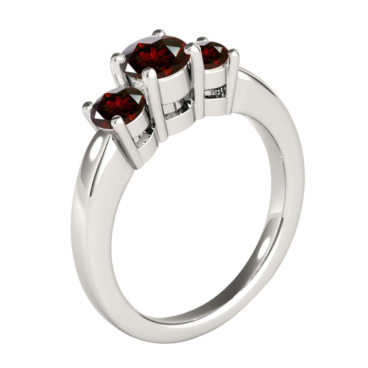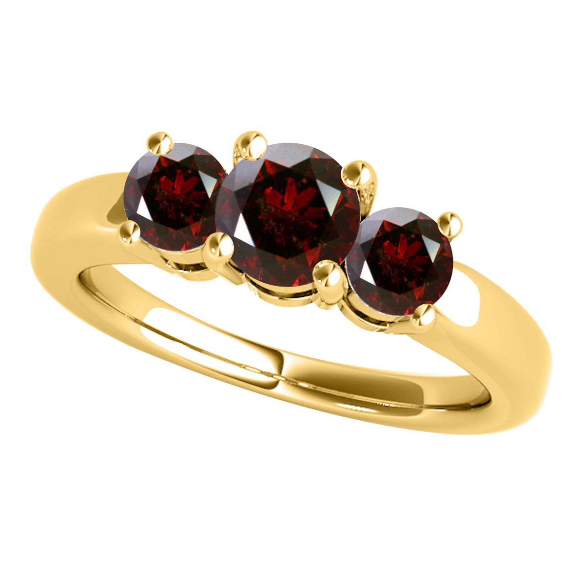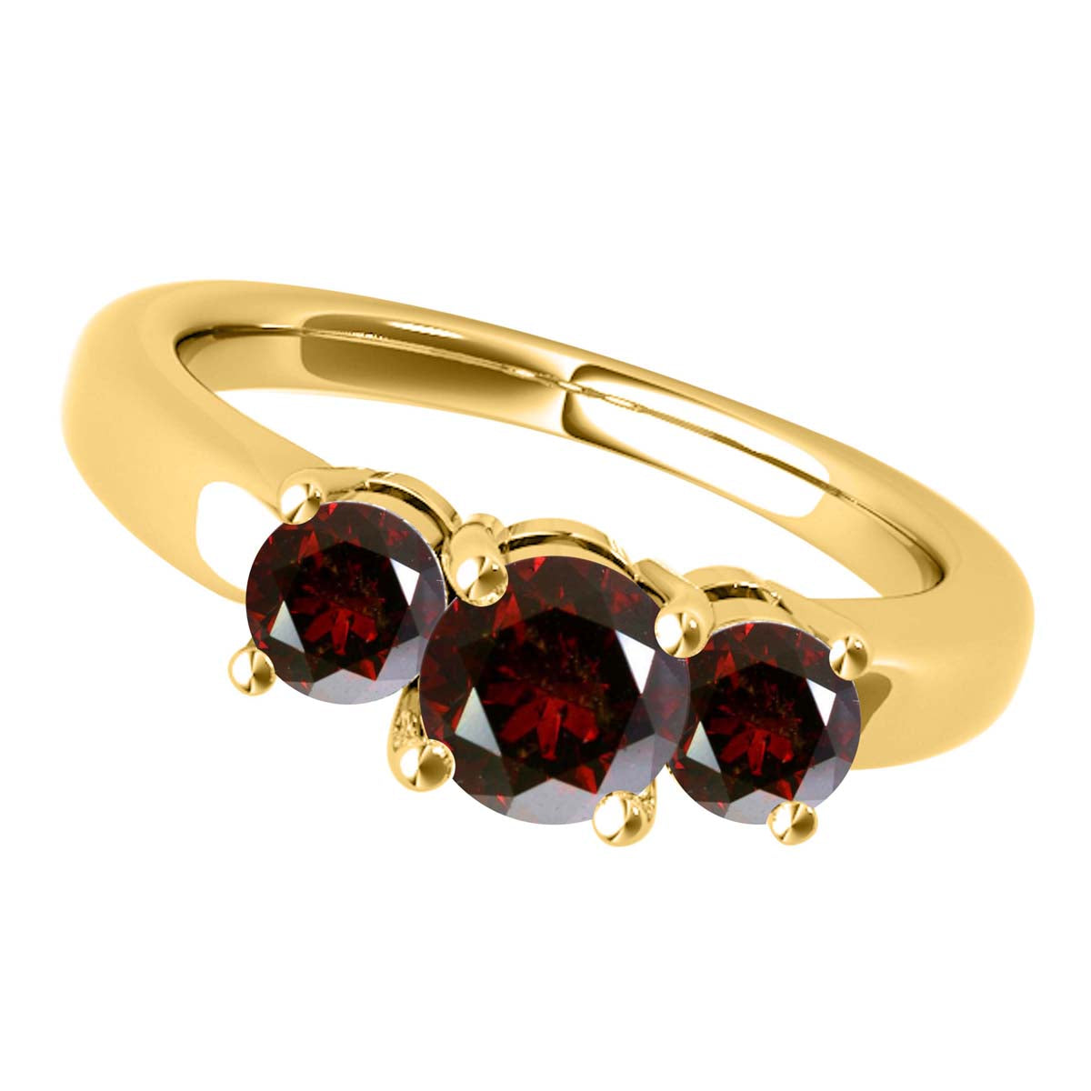 1.00 Carat Red Diamond Three Stone Engagement Rings for Women in 14K Solid Rose White & Yellow Gold