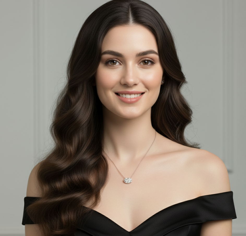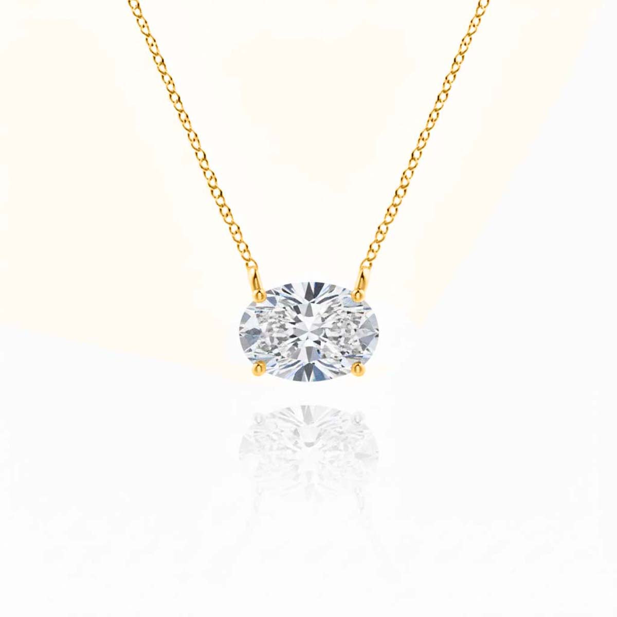 Mauli Jewels 14K Gold 0.80 Ct Lab Grown Oval Diamond Solitaire Pendant Necklace for Women, EF-VS1 Clarity, 7x5mm with Gold Cable Chain