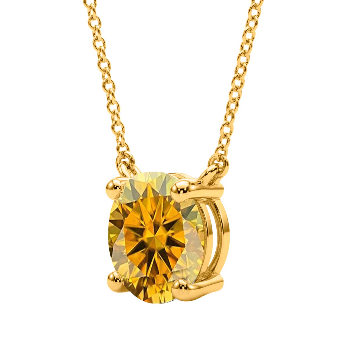 Mauli Jewels 14K Gold 3.00 Ct Lab Grown Yellow Moissanite Diamond Pendant Necklace Women (EF-VS1, 1 Stone) with Gold Cable Chain – Classic Round Solitaire Design