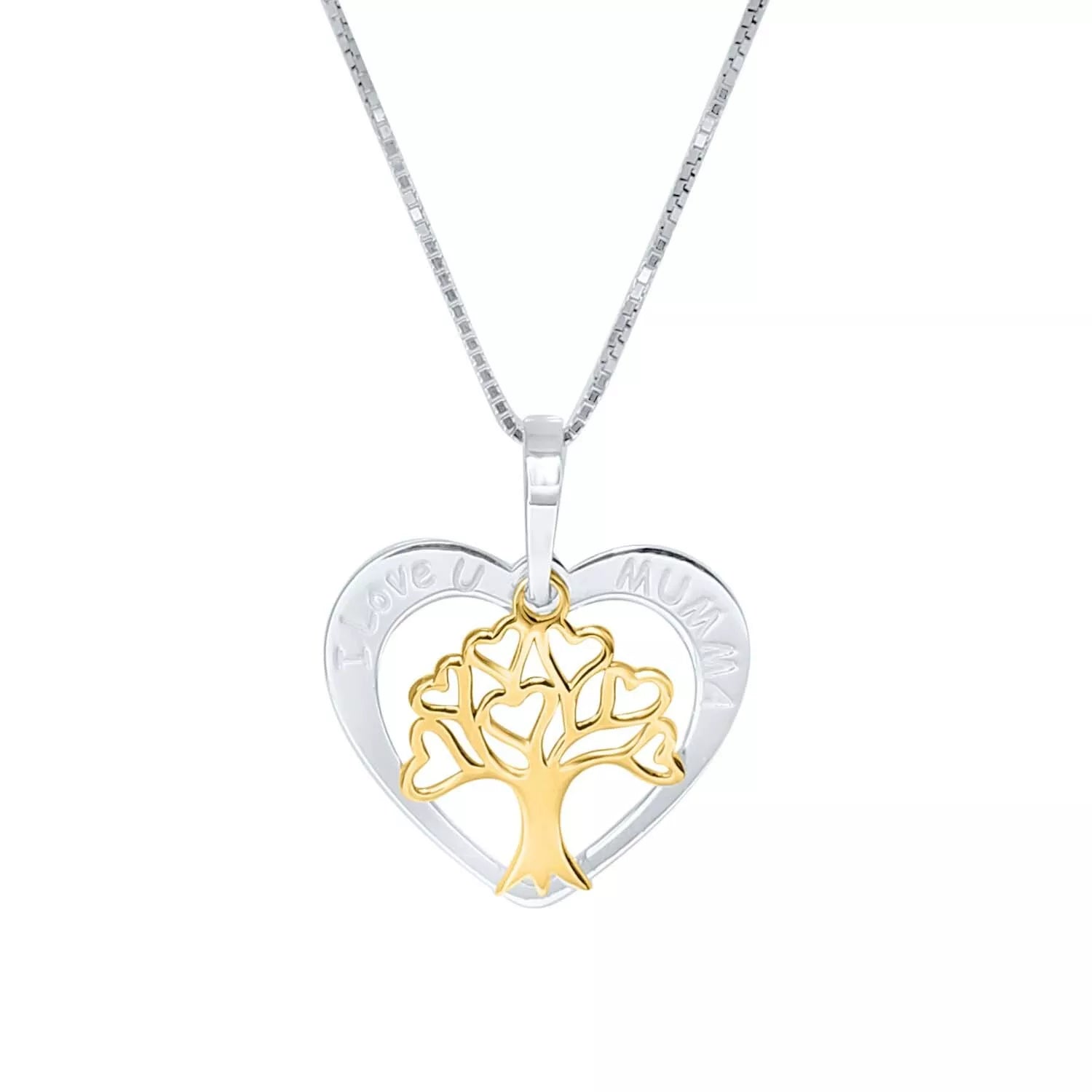 I Love U Heart Pendant Necklaces For Women Two Tone Gold Plated Sterling Silver