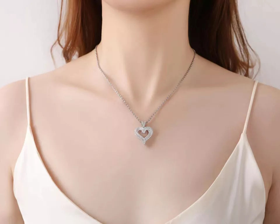 2 Ct Women's Heart Pendant Necklace in 14K White Gold Solid Silver