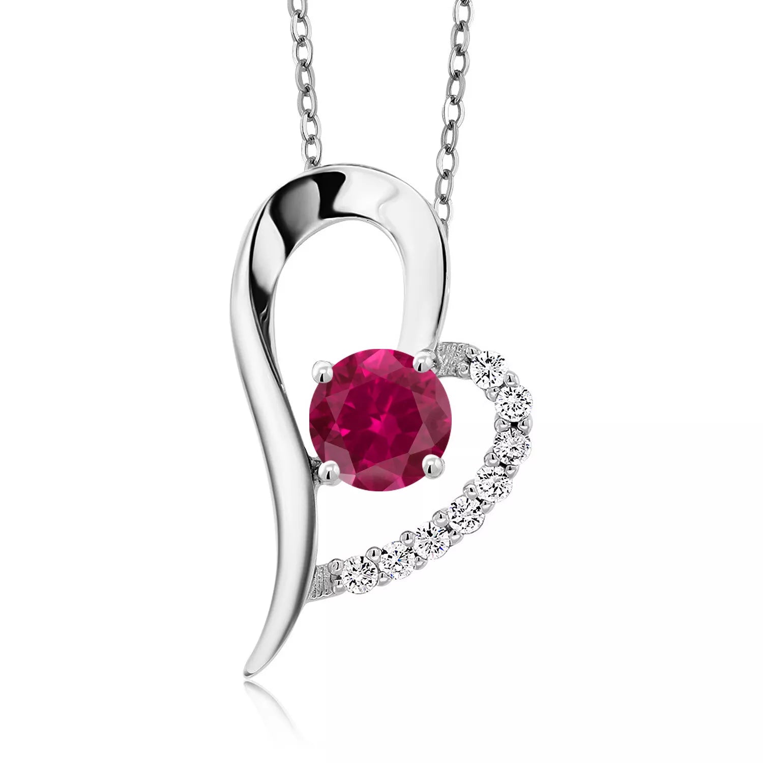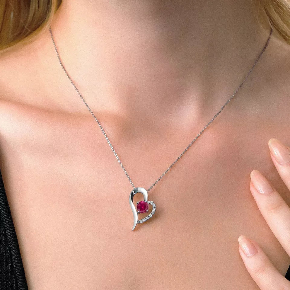 925 Sterling Silver Heart Shape Pendant Necklace For Women (Round 6MM, Gemstone Birthstone, with 18 Inch Chain)