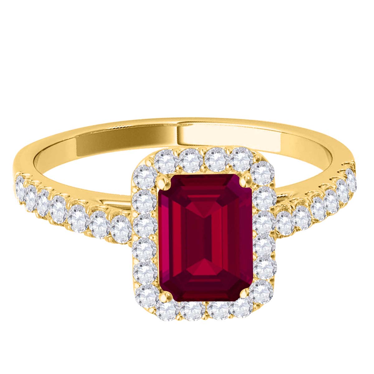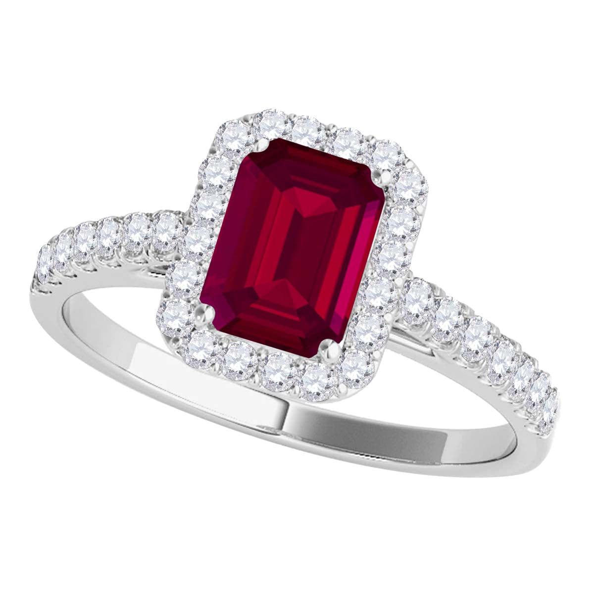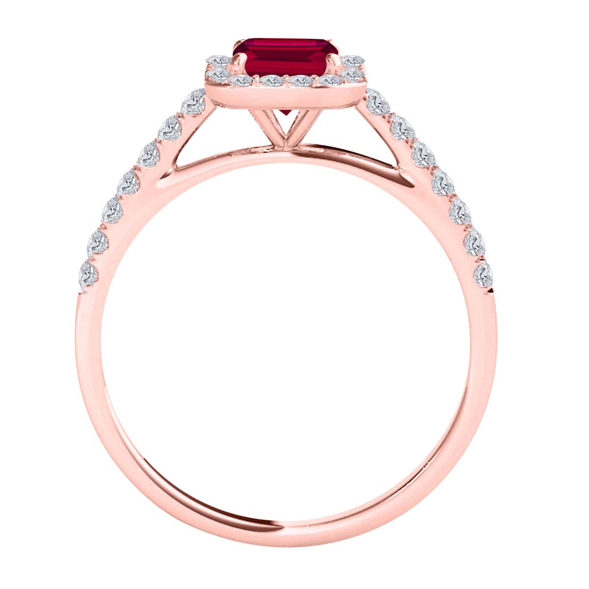 Mauli Jewels 0.79 Carat Emerald Cut Ruby and Diamond Ring for Women in 10K Rose, White and Yellow Gold, Elegant Prong Setting