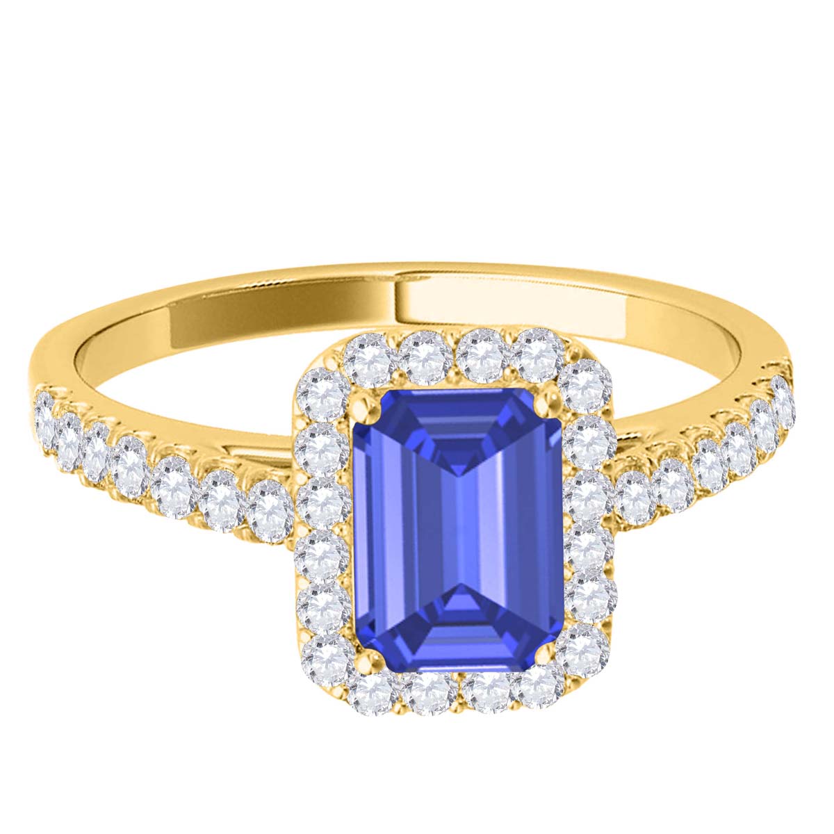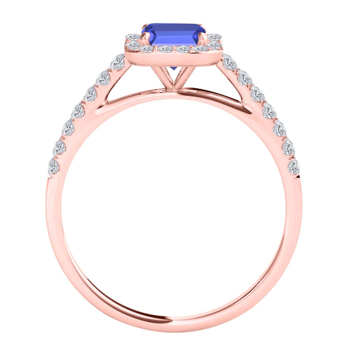 Mauli Jewels 0.79 Carat Emerald Cut Sapphire and Diamond Ring for Women in 10K Rose, White and Yellow Gold, Elegant Prong Setting
