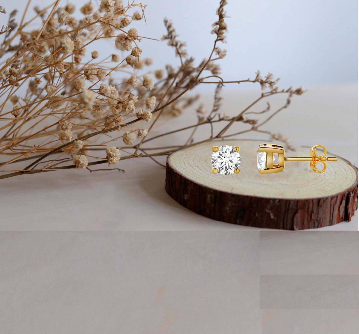 Mauli Jewels 1.00 Ct Prong Set Diamond Stud Earrings | 14k Yellow Gold, E-F Color, VS1 Clarity | Secure Push Back Earrings for Women