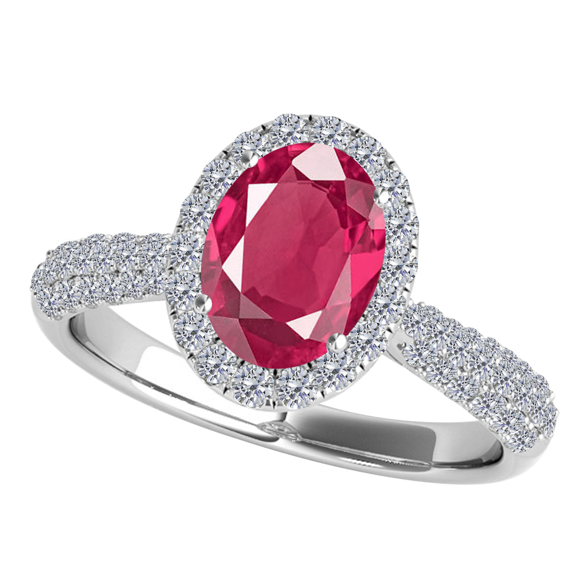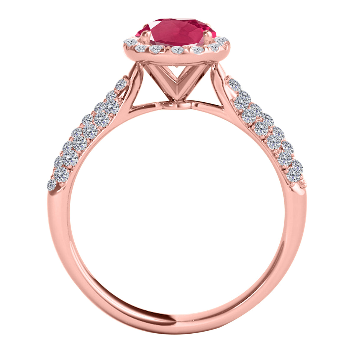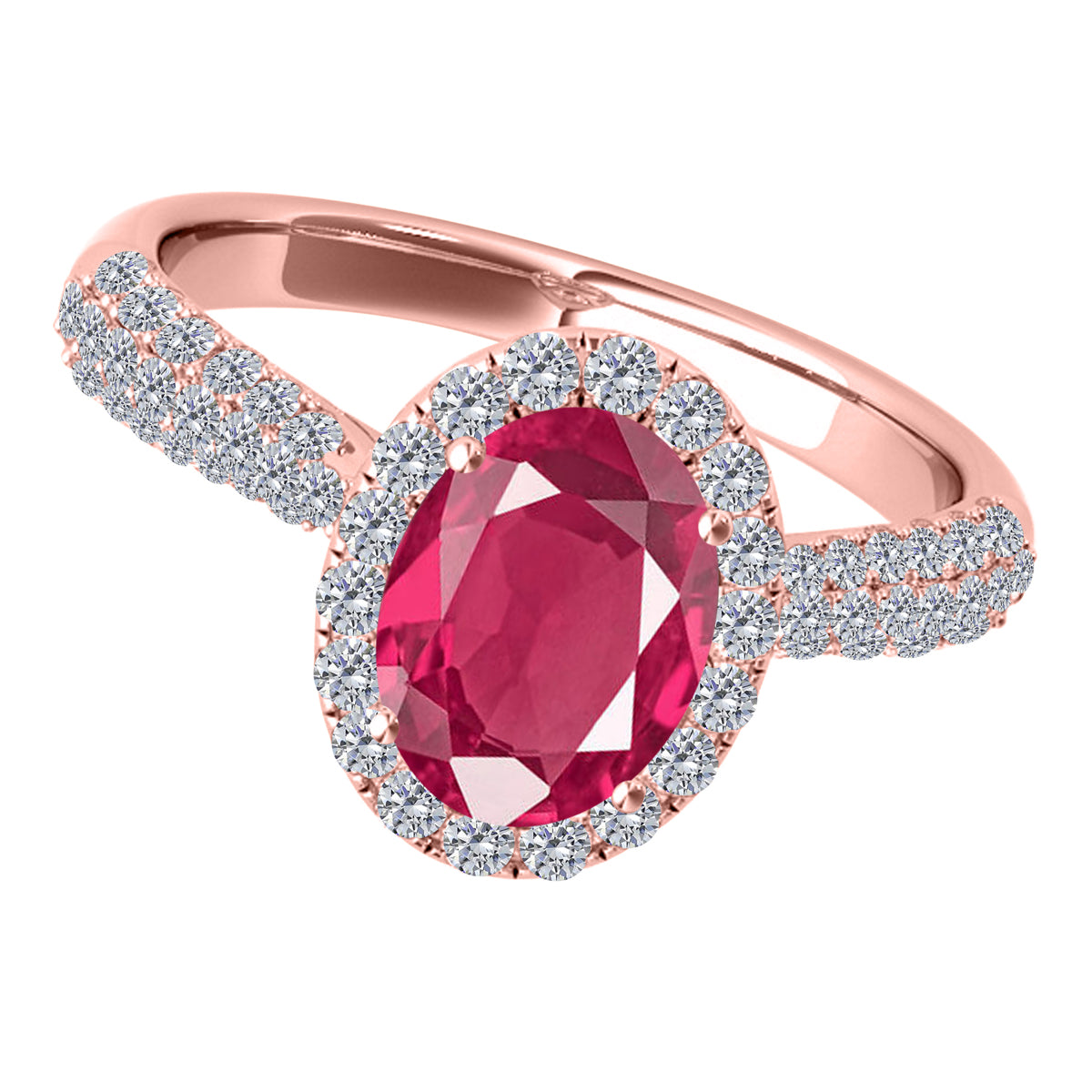 Mauli Jewels 1.20 Carat Oval Created Ruby and Diamond Ring for Women in 10K Rose, White and Yellow Gold, Elegant Vintage Pave Design