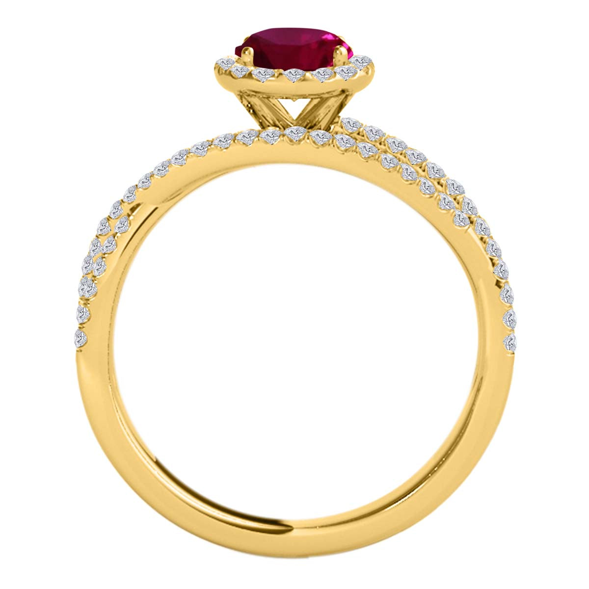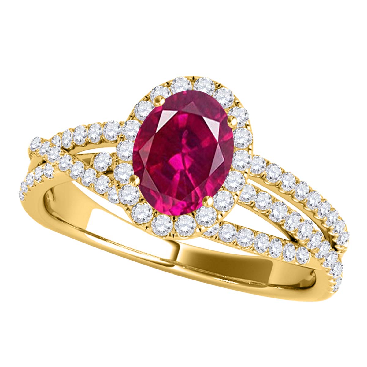 Mauli Jewels 10K Rose, White & Yellow Gold 1.22 CTW Oval Created Ruby Halo Lab Grown Diamond Ring for Women